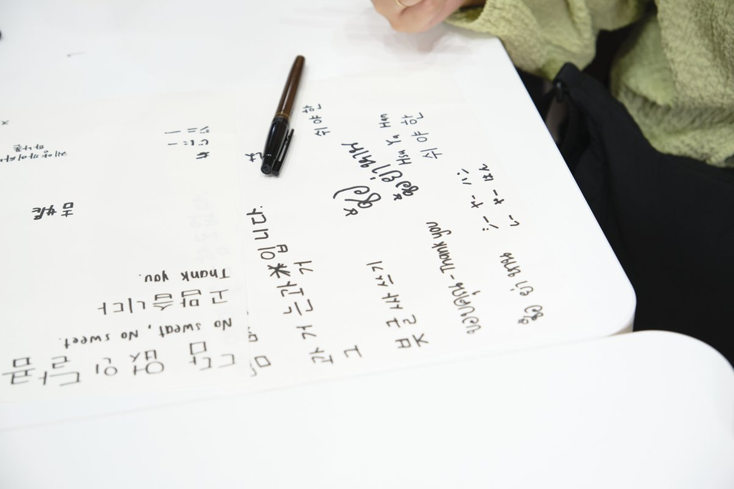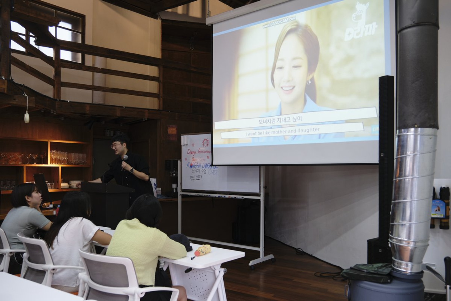 ハングルを書いてみたり、人気ドラマの名シーンのセリフから使えるフレーズを学んだり、韓国らしい思想を背景に感じることわざなどの言い回しを教えてもらったり・・