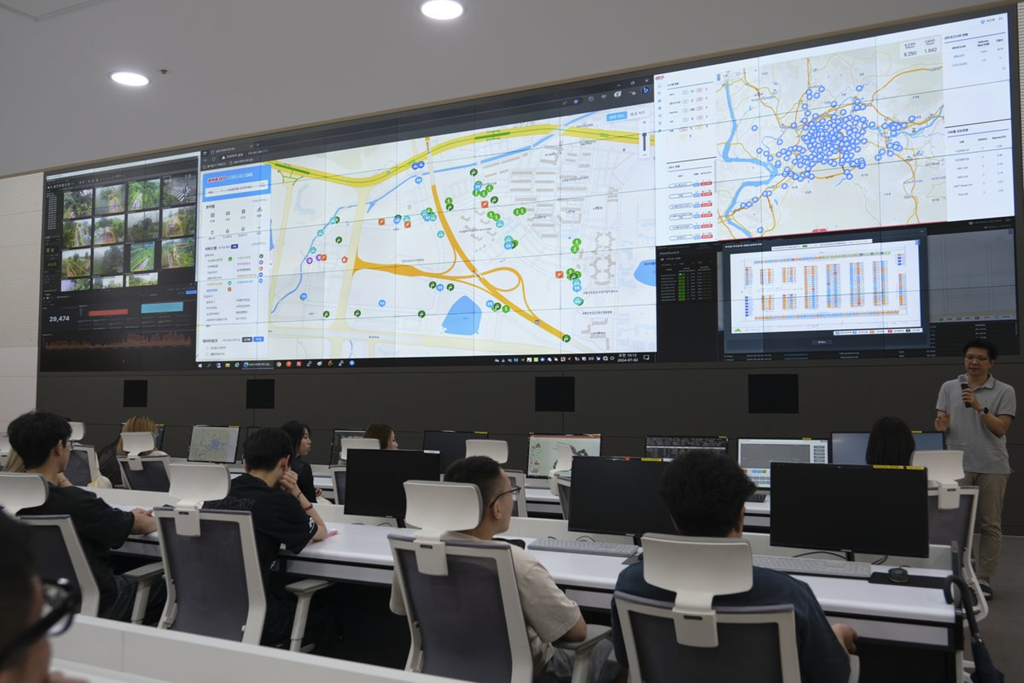 大邱市はいち早くスマートシティ構想を進めてきた都市であり、パーキングの空き状況や道路状況など、街のあらゆる状況をリアルタイムでデータで可視化する仕組みづくりが行われています。市の担当者から、そうしたまちづくりの取り組みについての解説がなされました。