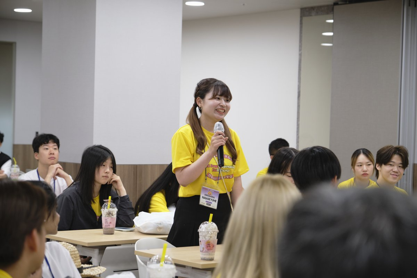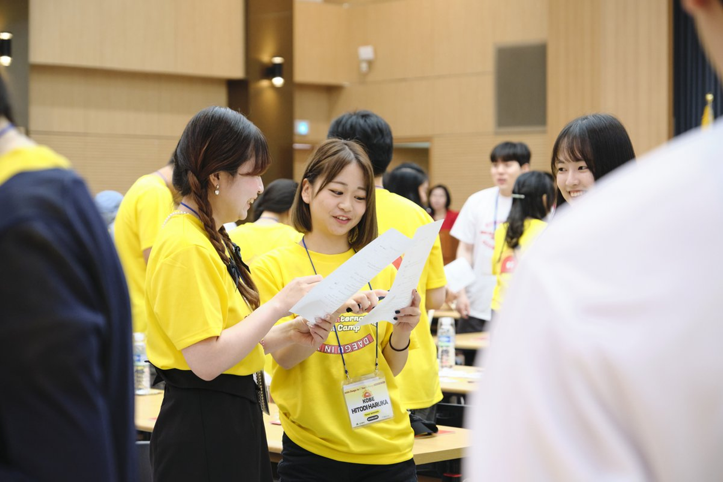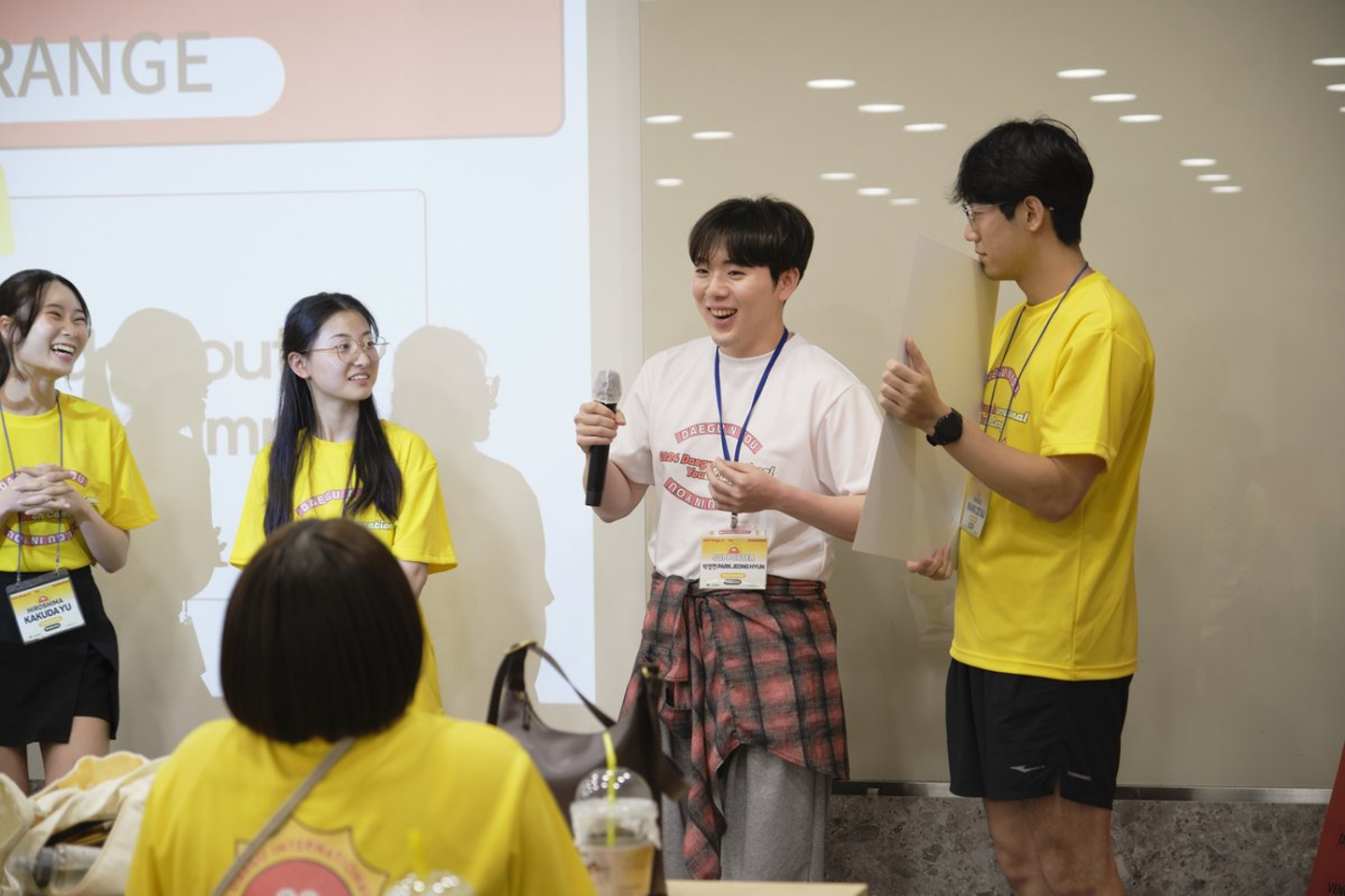 まだお互いの顔も名前も覚えていない状態の学生たち。スピーチの後には、お互いを知るための自己紹介も兼ねたゲーム的ミッションが与えられました。最初こそちょっと緊張気味だった学生たちですが、そこはやはり同世代のノリなのか。ゲームに挑む形でコミュニケーションをとり始め、徐々に場も温まっていきます。