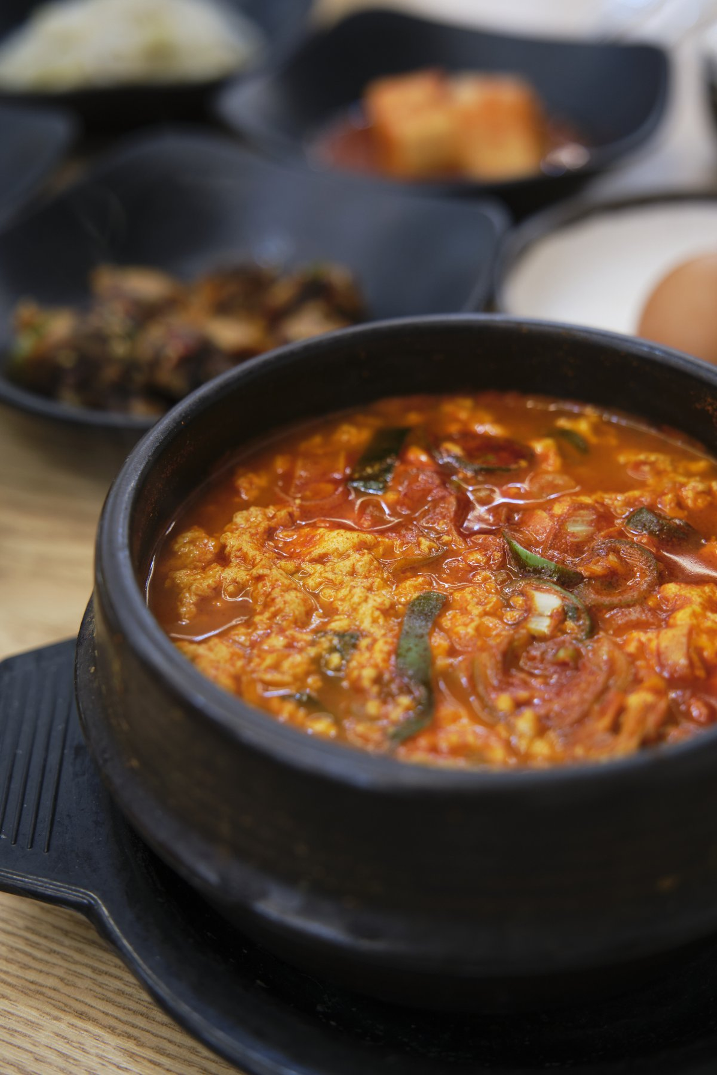 ランチはスンドゥブ。見た目よりも辛くありません。汗が出て、野菜もたくさんとれてとにかく元気になれる韓国料理の代表格の一つですね。本場で味わえて感激です。
