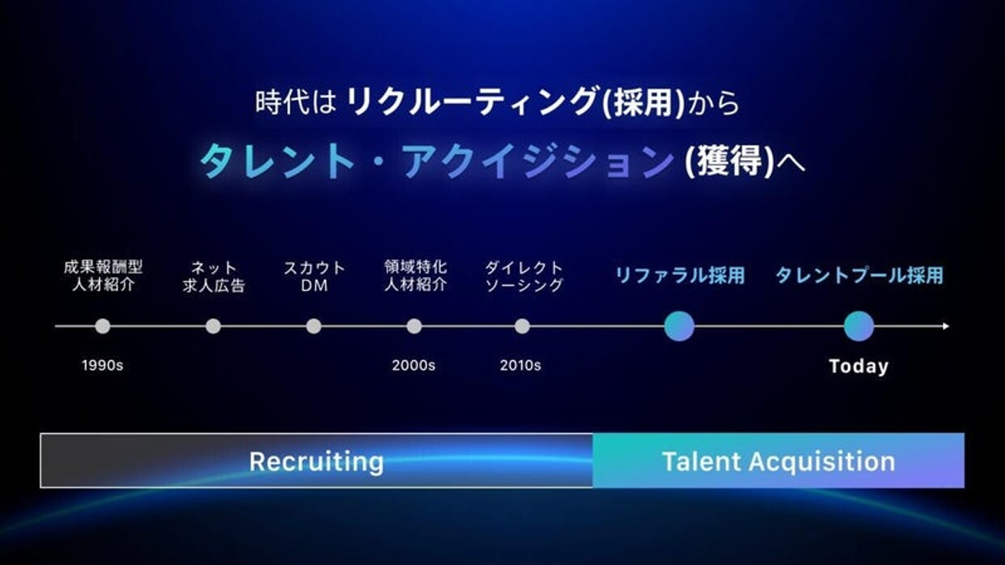 この国の産業構造改革を考えた場合、おそらく「タレントアクイジション」への変革は誰かがやらないと難しいだろうなと思っています。なので我々が2025年こうなっているであろうという未来から逆算して、チャネルだけではなくて採用の概念自体を塗り替えに行くというのが今回の我々のチャレンジになります。