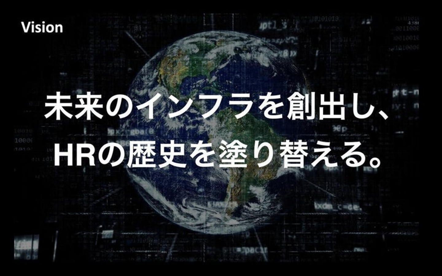 我々は既存の採用手法だけではなく、その概念自体を塗り替えて、HRの今の歴史をアップデートしていく必要がある。そんな中で今回、新しいビジョンとして「未来のインフラを創出し、HRの歴史を塗り替える」と定義しています。