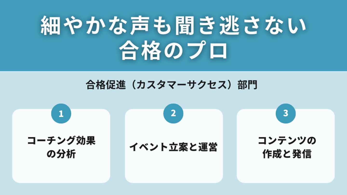 カスタマーサクセスのことを、弊社ではGS(合格促進)と呼んでいます。