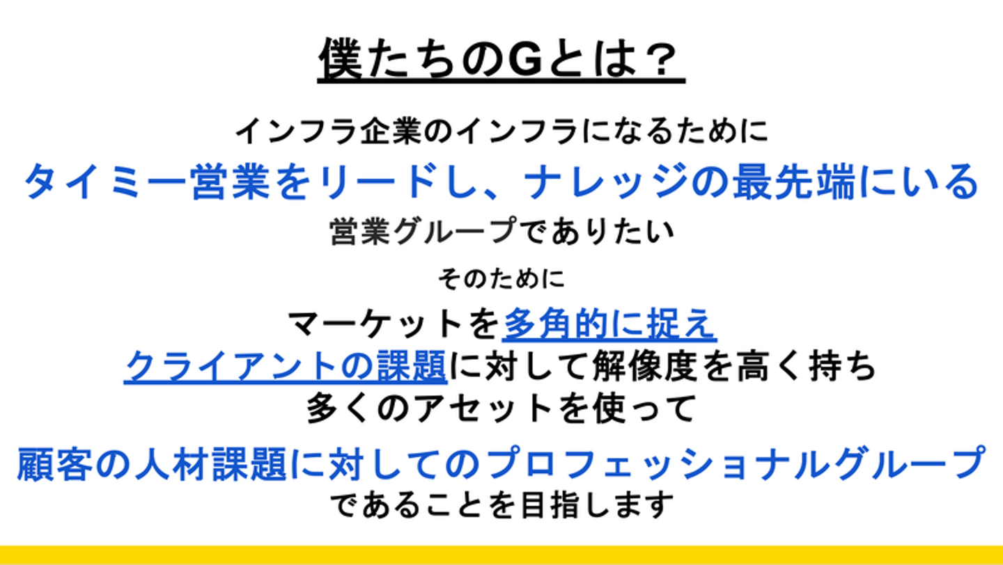 でもメンバーが頑張ってくれた大きな理由は、やっぱりメンバーそれぞれのやりたい事と、グループとしてのやるべき事を「顧客目線」というひとつの前提で重ねられたからじゃないかと思いますね。