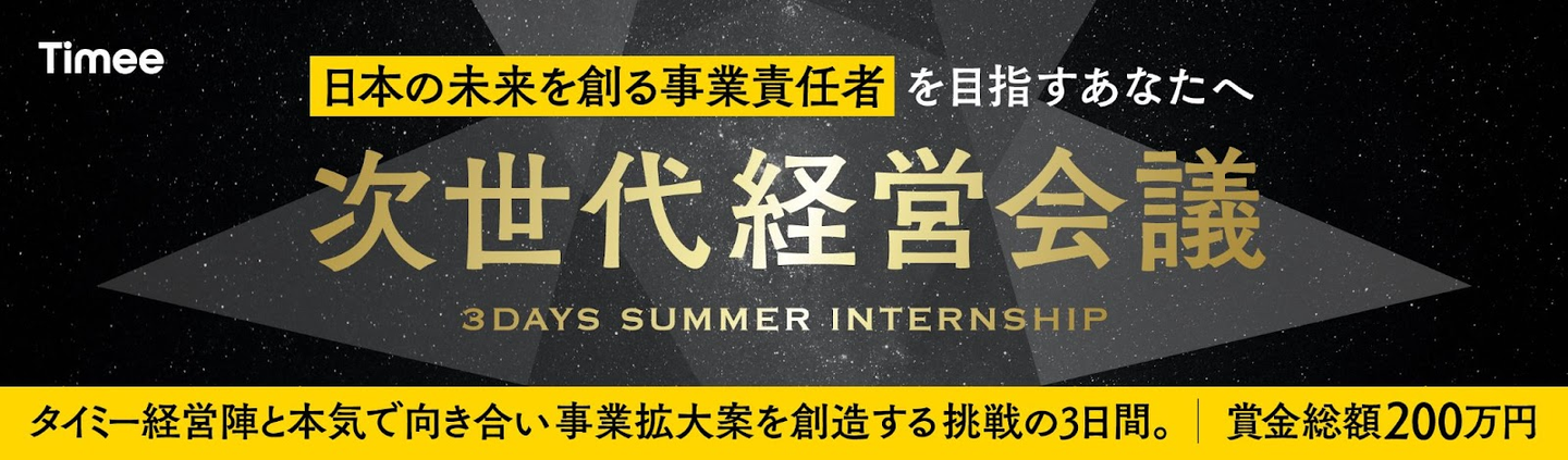 皆さんこんにちは。タイミー採用広報です!本日は、2023年夏に行われたサマーインターン「次世代経営会議」のレポートを公開いたします📣