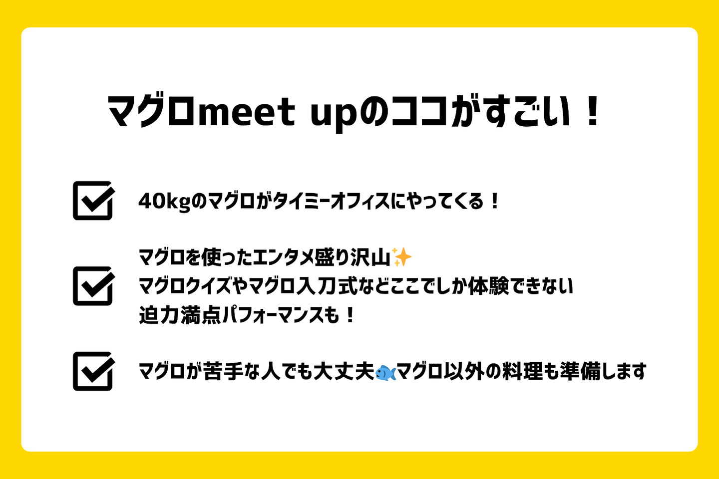 カジュアルなイベントを通してタイミーの魅力や雰囲気を知ることで “少しでも興味を持っていただきたい…!” という思いのもと開催された「マグロmeet up」。