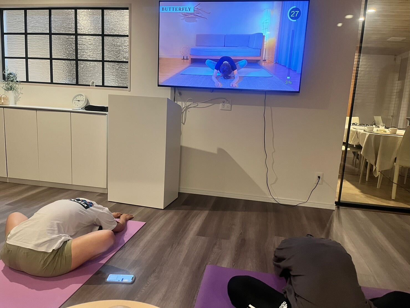 自由時間では参加した皆さんで動画を見ながらヨガを行ったり、