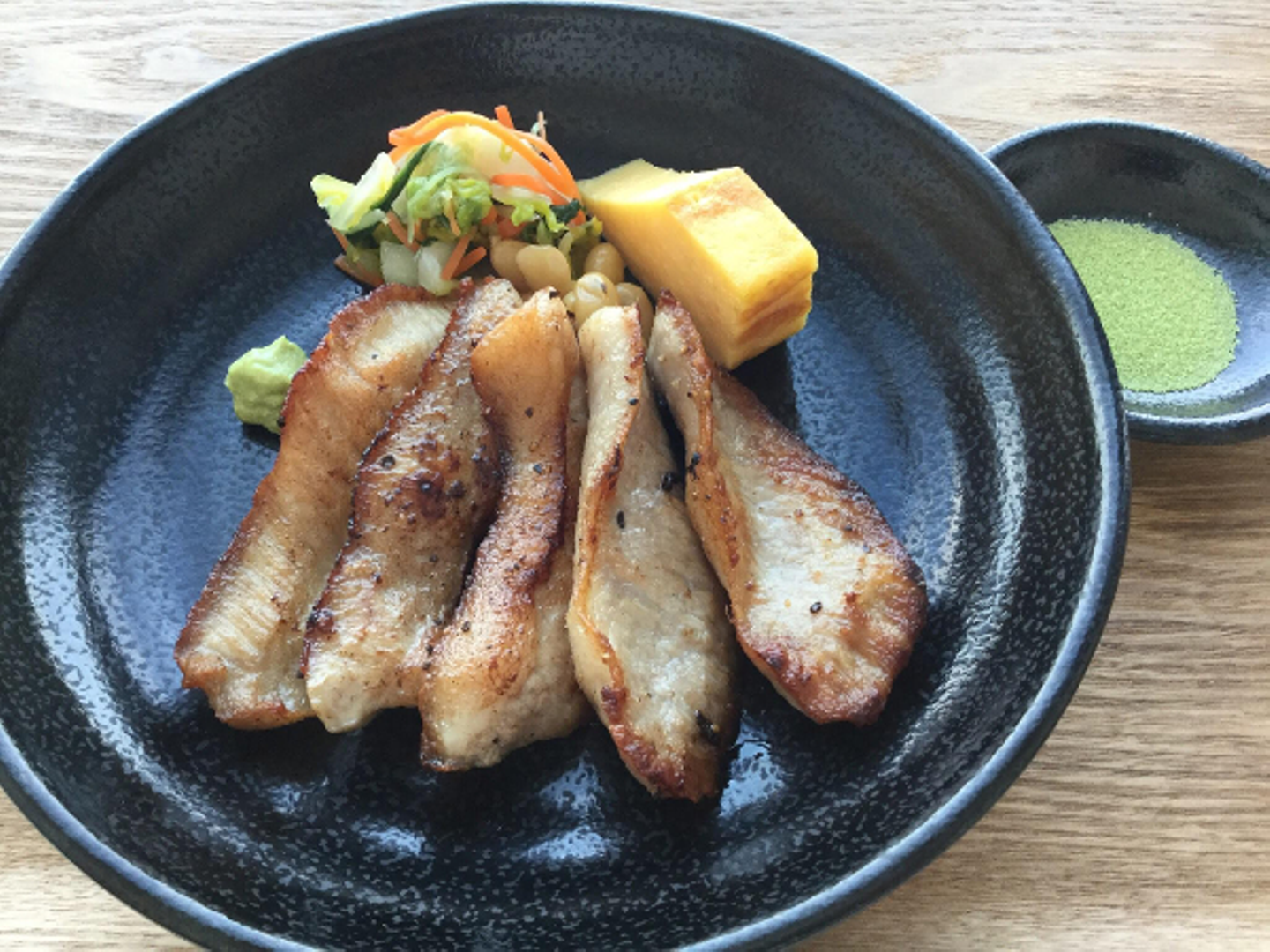 ほどよい脂身とお肉の旨みが食欲をそそります。上品に「抹茶塩」でいただきます。メインの肉料理は毎度人気メニュー。「焼肉定食」や「すき焼き」など、日替わりでさまざまな肉料理を楽しむことができます。