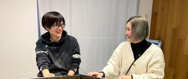 1on1ミーティングを通して上司や研修担当とともに個別に成長のための課題をディスカッションします。社長との距離も近く、新入社員であっても全員と話すことができる文化です。先輩後輩、チームの垣根の関わりなく、悩み相談や事例共有が活発なチームです。