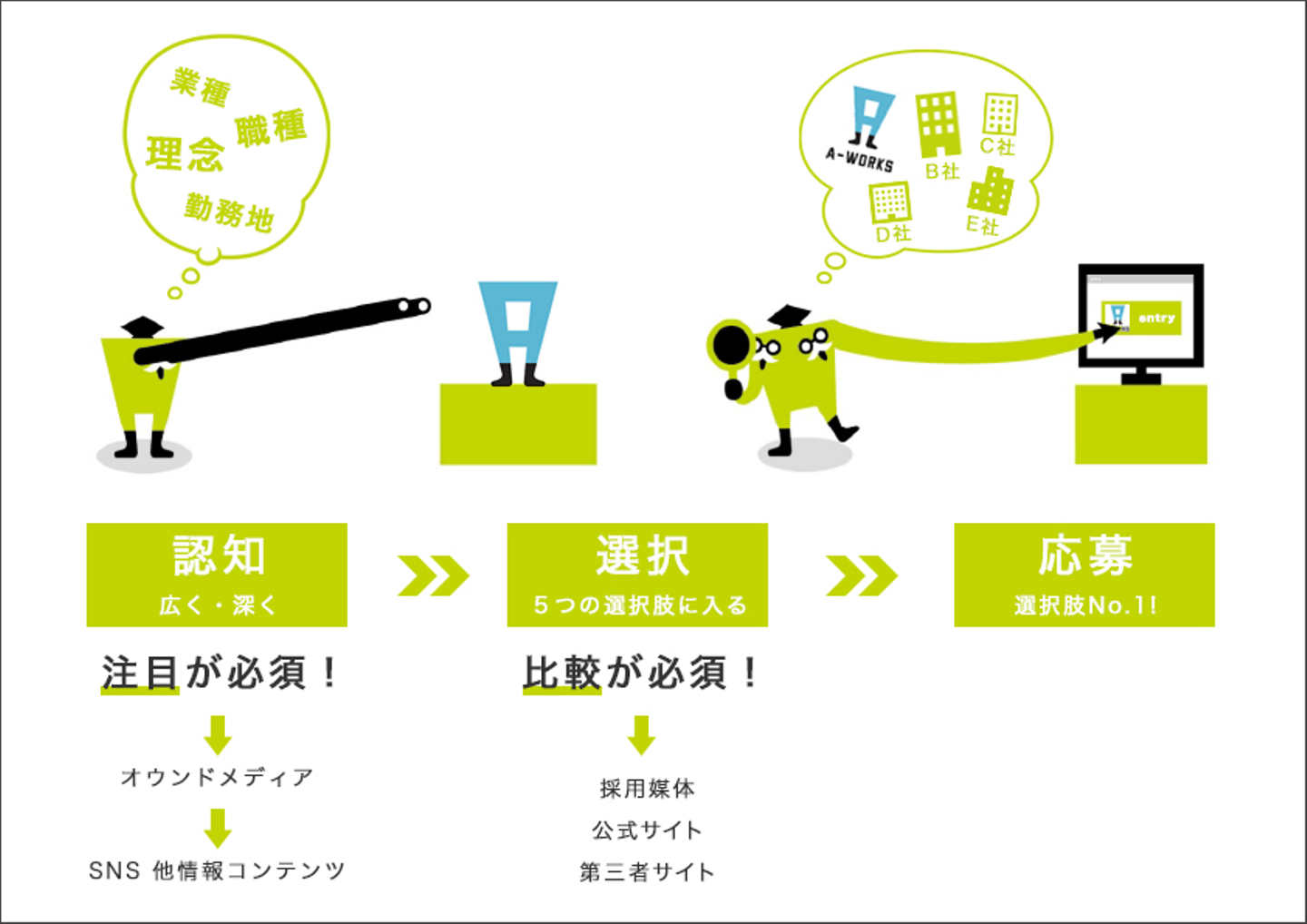※企業の認知から比較・検討、応募までの、求職者のアクションイメージ