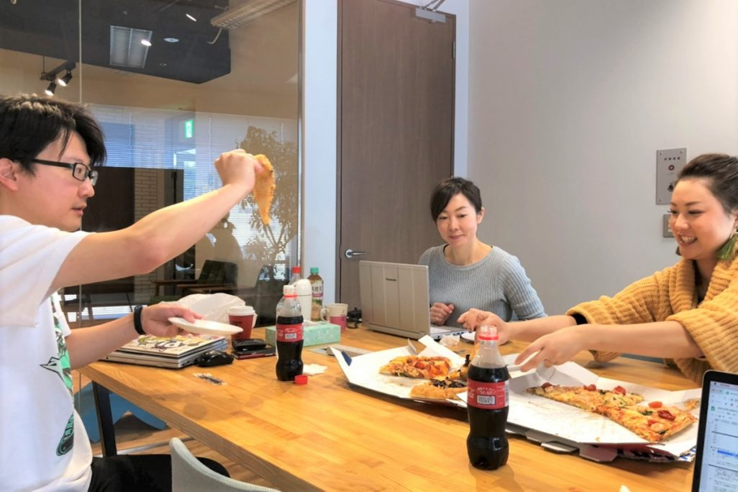BMGでは、開始時間をランチに合わせピザを注文して、会議室で始めることにしました。