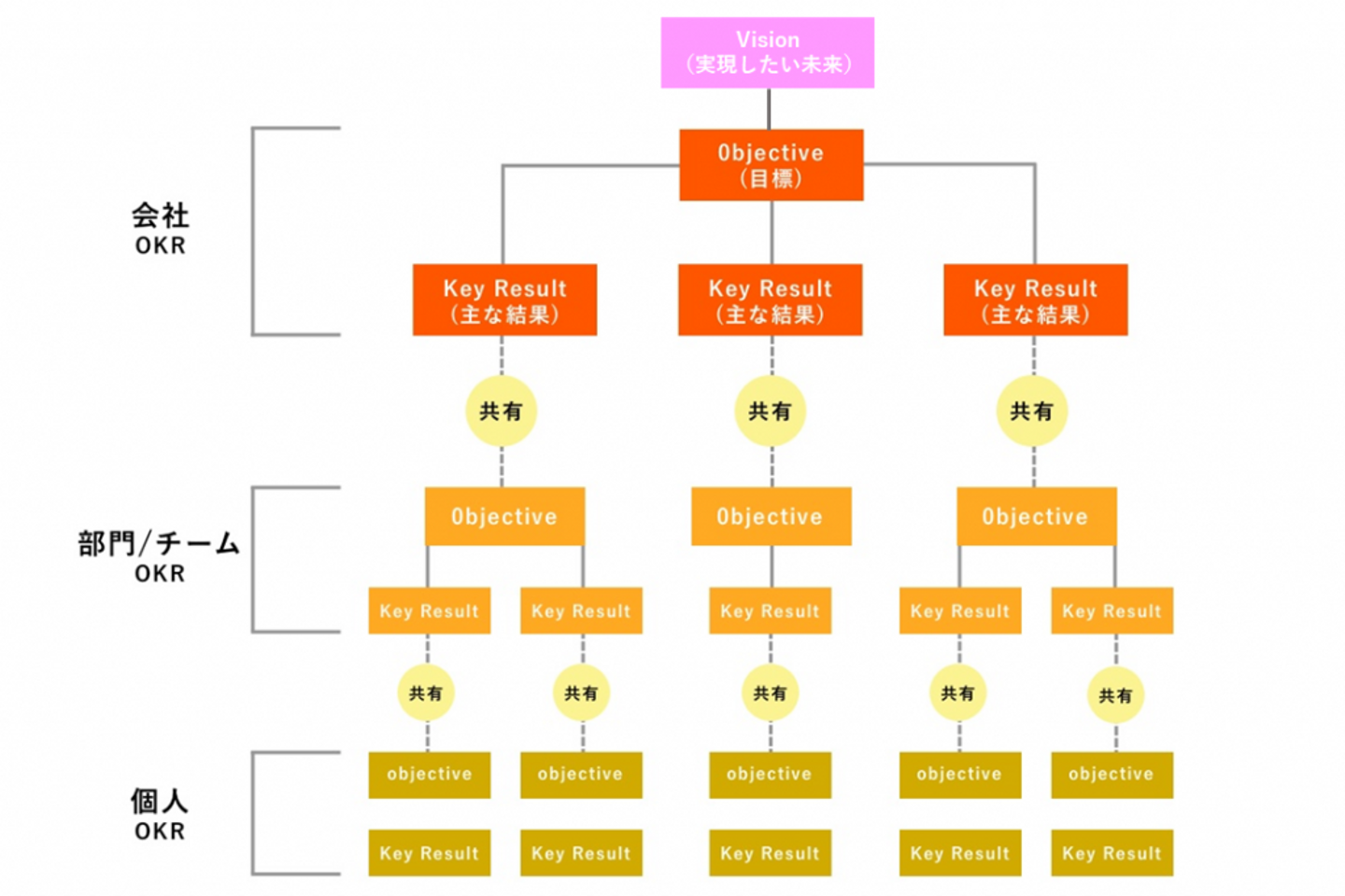 各部門のビジョンをもとに、目標(Objectives)を定め、それを達成するための結果指標(Key Results)を設定することで成長スピードを加速させることが狙いです。