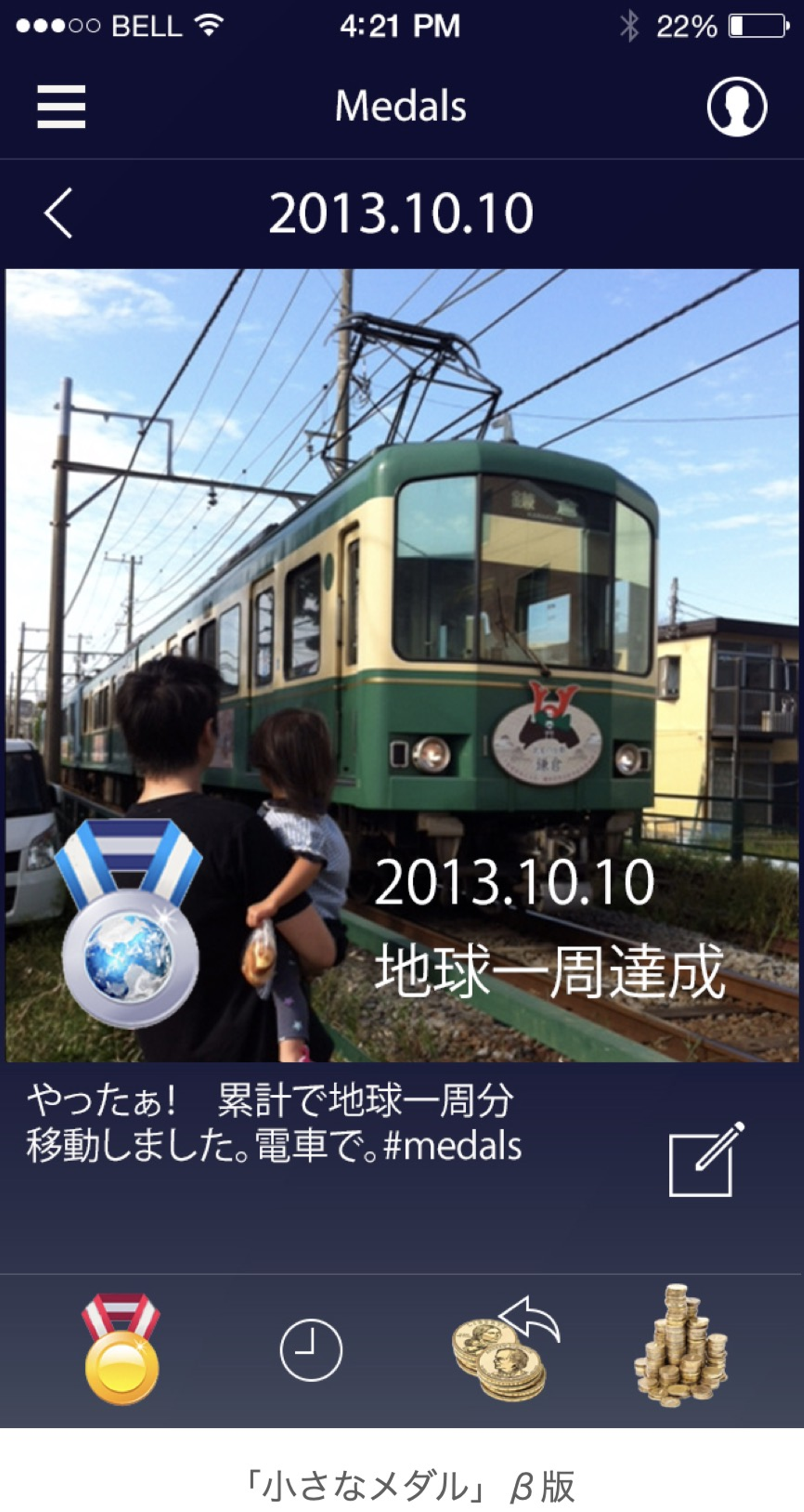 SAPに応募する前から、人の幸せに貢献するアプリケーションを作りたいという想いがあり企画していたアプリがありました。「小さなメダル」と言います。スマートフォンでユーザーのライフログをとり、その記録に応じて小さな奇跡を演出することで、幸せを感じてもらえるアプリです。例えば通勤で移動した距離を記録していき、ある日「あなたは地球1周と同じ距離の移動を達成しました!」と称えてメダルを贈る。このアイデアはソニーの社内でも好評でした。