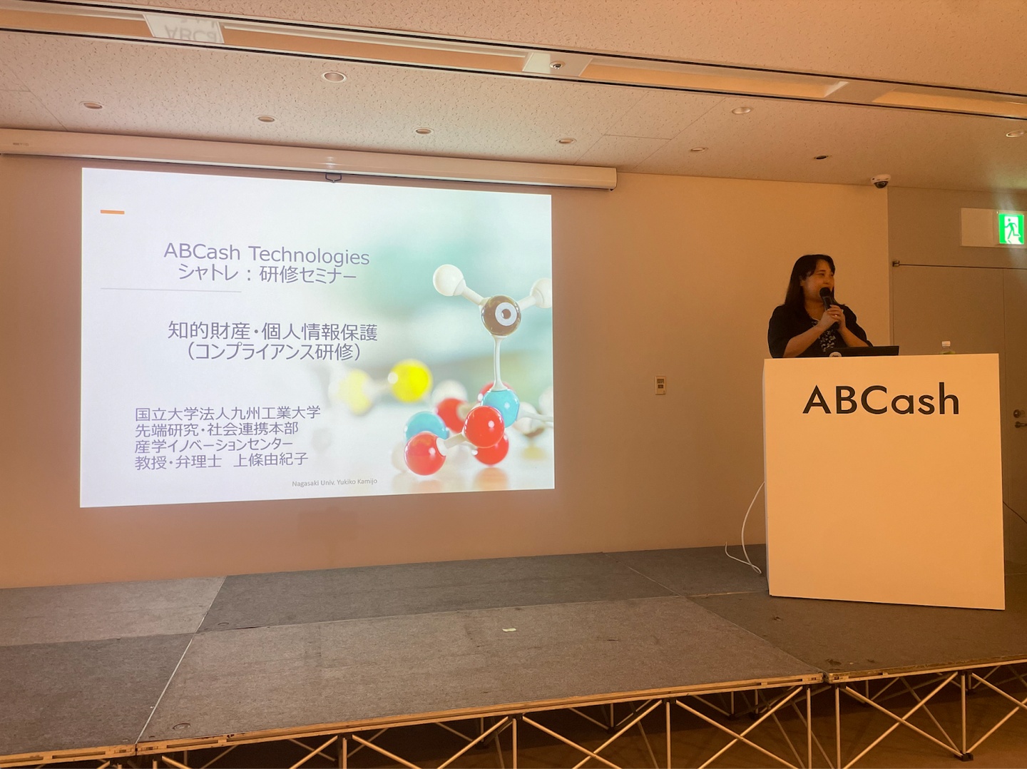 今月の社トレは、社外取締役の上條 由紀子先生にお越しいただき、「知的財産・個人情報保護」について講義いただきました。知財にもオフェンスとディフェンスがあると言うお話や、私たちの普段のお仕事に関わる知財についてなど、とても大切な講義で、もっと意識していくべきことがあるな、と感じました。