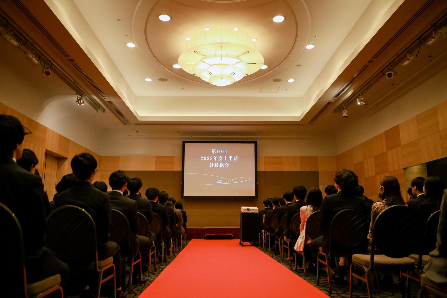 半期の業績を全員で振り返り、活躍した社員の表彰、次期に向けての行動スローガンなどが発表されます。社員にとっては改めて日々の業務やこれからの半期に向かって気持ちを入れ替える機会となっております。今回も前回と同様、セルリアンタワー東急ホテルにてリアル開催をしました。