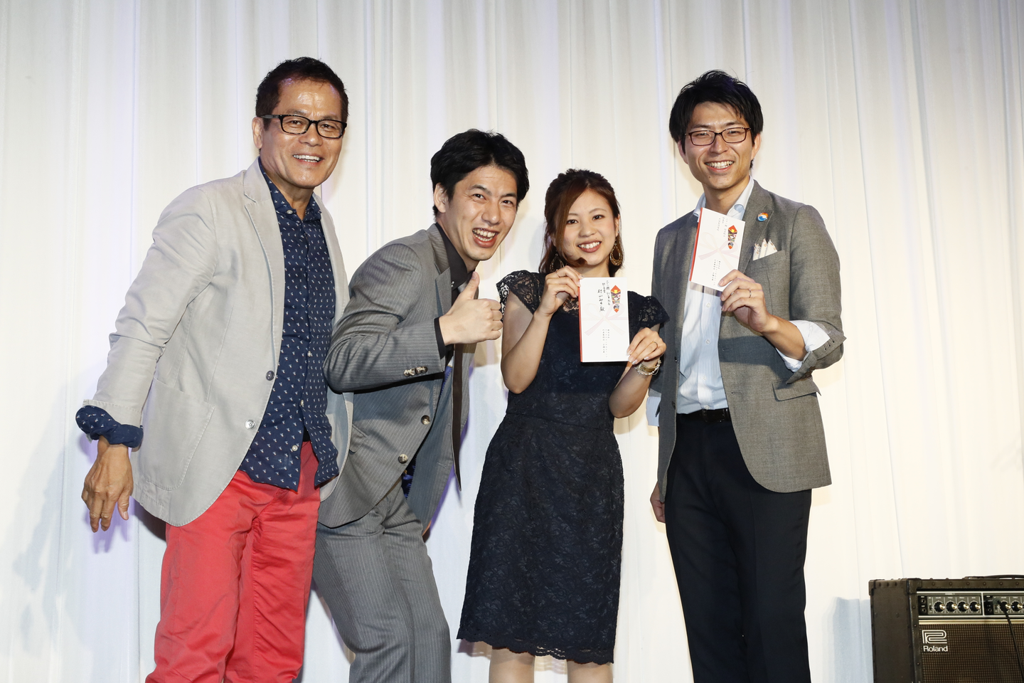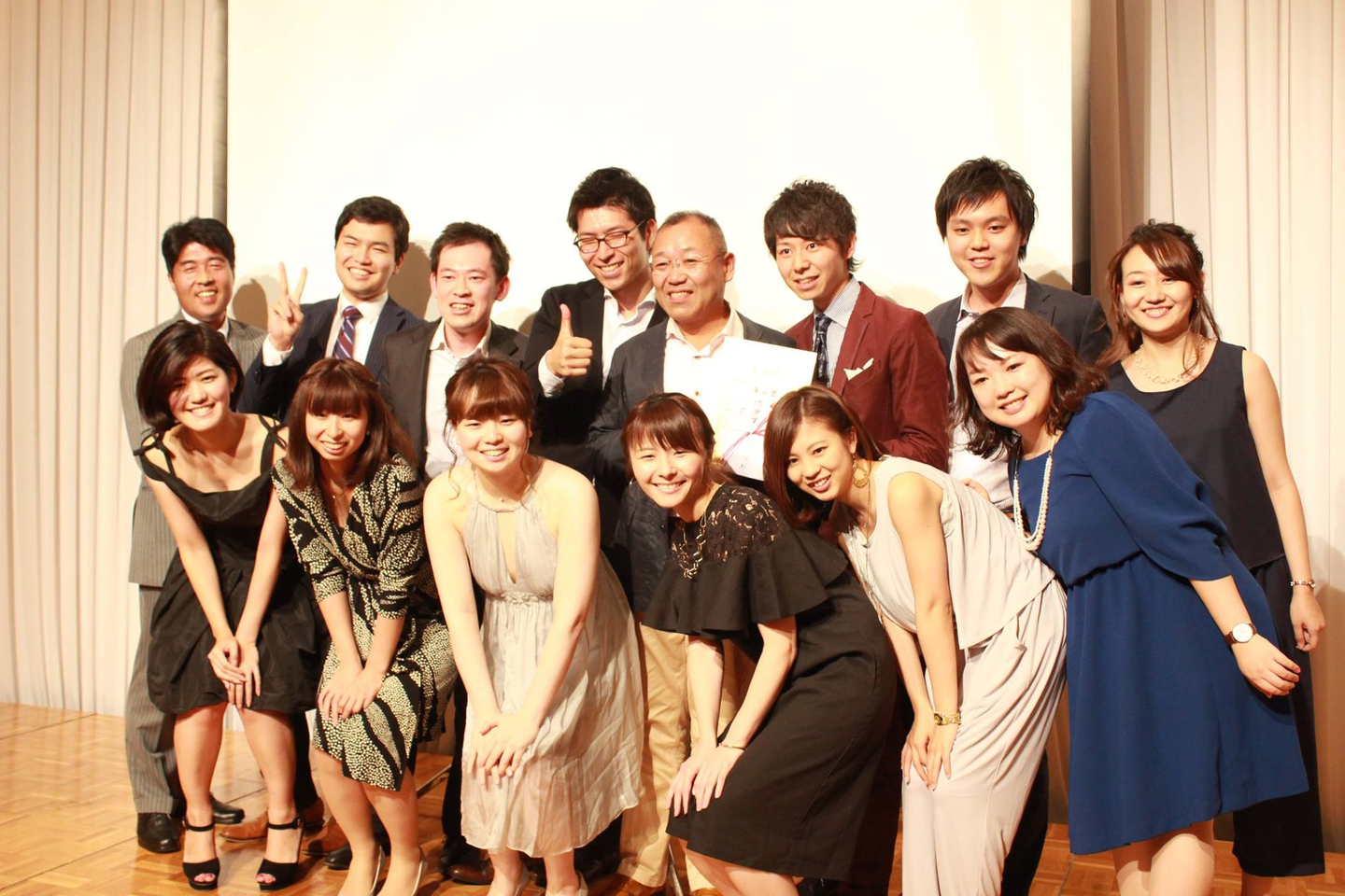 (『中期経営計画発表会』と呼ばれる大きな社内行事にて。頑張った社員の功績を讃え表彰し、今後の会社の方針発表を行う会です。前列右から2人目が村山さんです。)