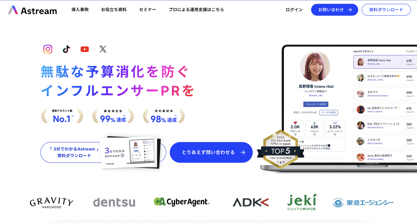 Astream:日本最大級のデータ量を誇るインフルエンサーマーケティングツール