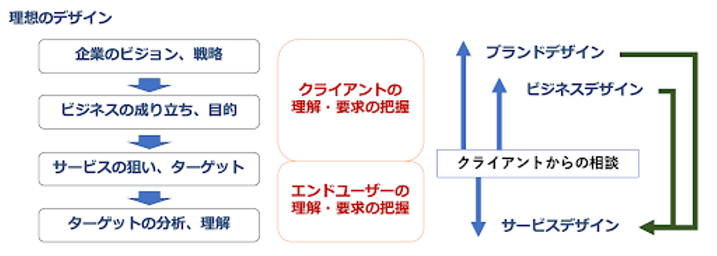 理想のデザインとは、「全ての要素が根拠に基づいてロジカルに設計されている」ことだと私は考えます。つまり、ビジネスの成り立ちを知り、目的を知り、そのために必要とされる要素をロジカルに繋ぎ合わせてサービスを設計し、そのサービスを届ける人に向けたプロモーションや実際に使う際のUIを根拠を持って設計し、実際に利用者によって使われた際の実績を分析することで更に精度の高い根拠をもってサービス設計の見直しを行うこと、これら全てにおいてロジカルであり、その様がアウトプットされた情報によって共通認識を持てる状態こそ理想のデザインと言えるのではないでしょうか。