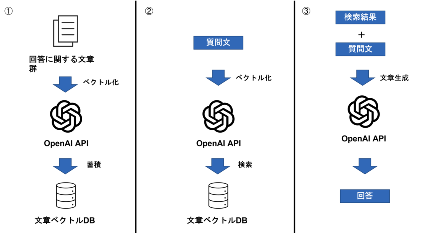 記事内での、GPT-3における文章をベクトル化する機能のステップ紹介の図