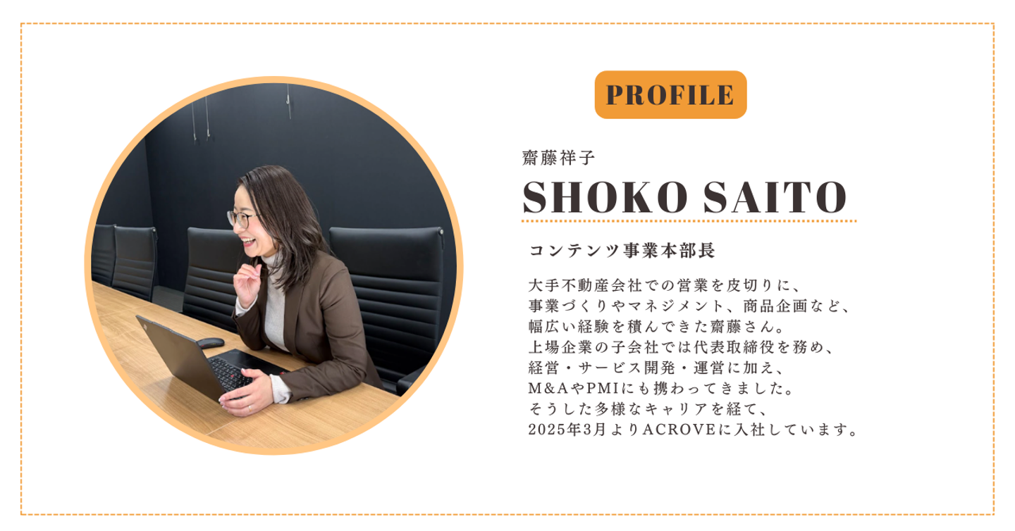 Q まさに今事業拡大中のACROVEで、齋藤さんが率いるのは新規事業です。事業内容や今後の展開、チームマネジメントなどについても、是非教えてください!