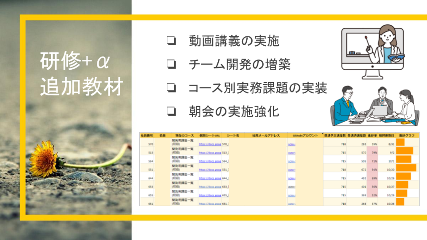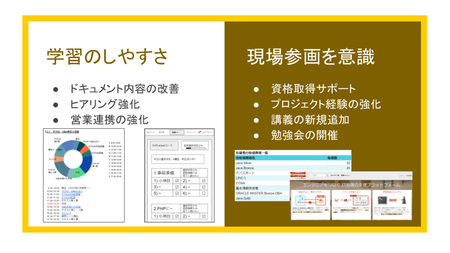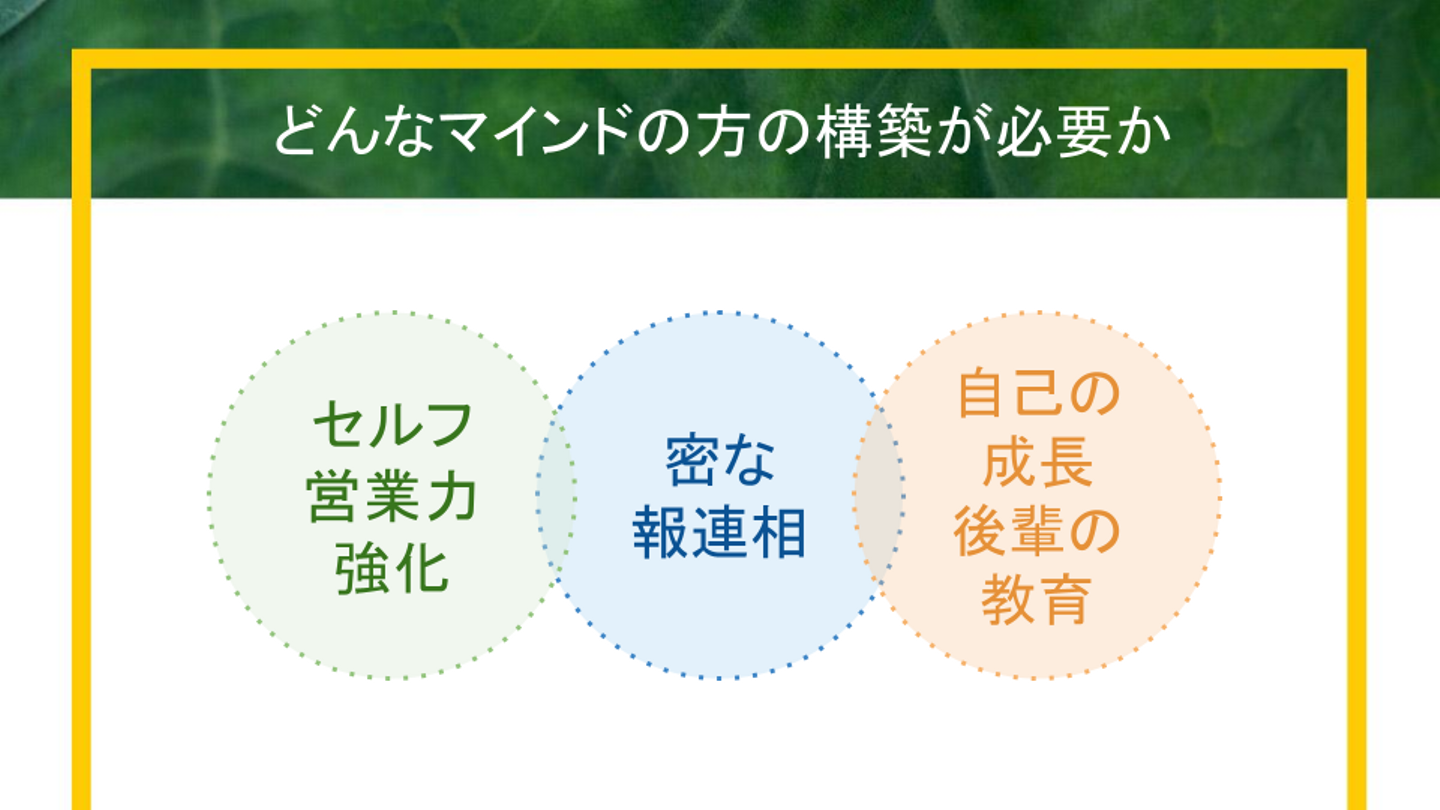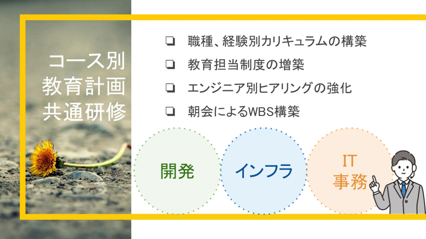 社内の営業部署、マーケティング部署と連携して分析した結果、必要な技術のみならずマインドの形成にも着手する施策を打ち出しています。