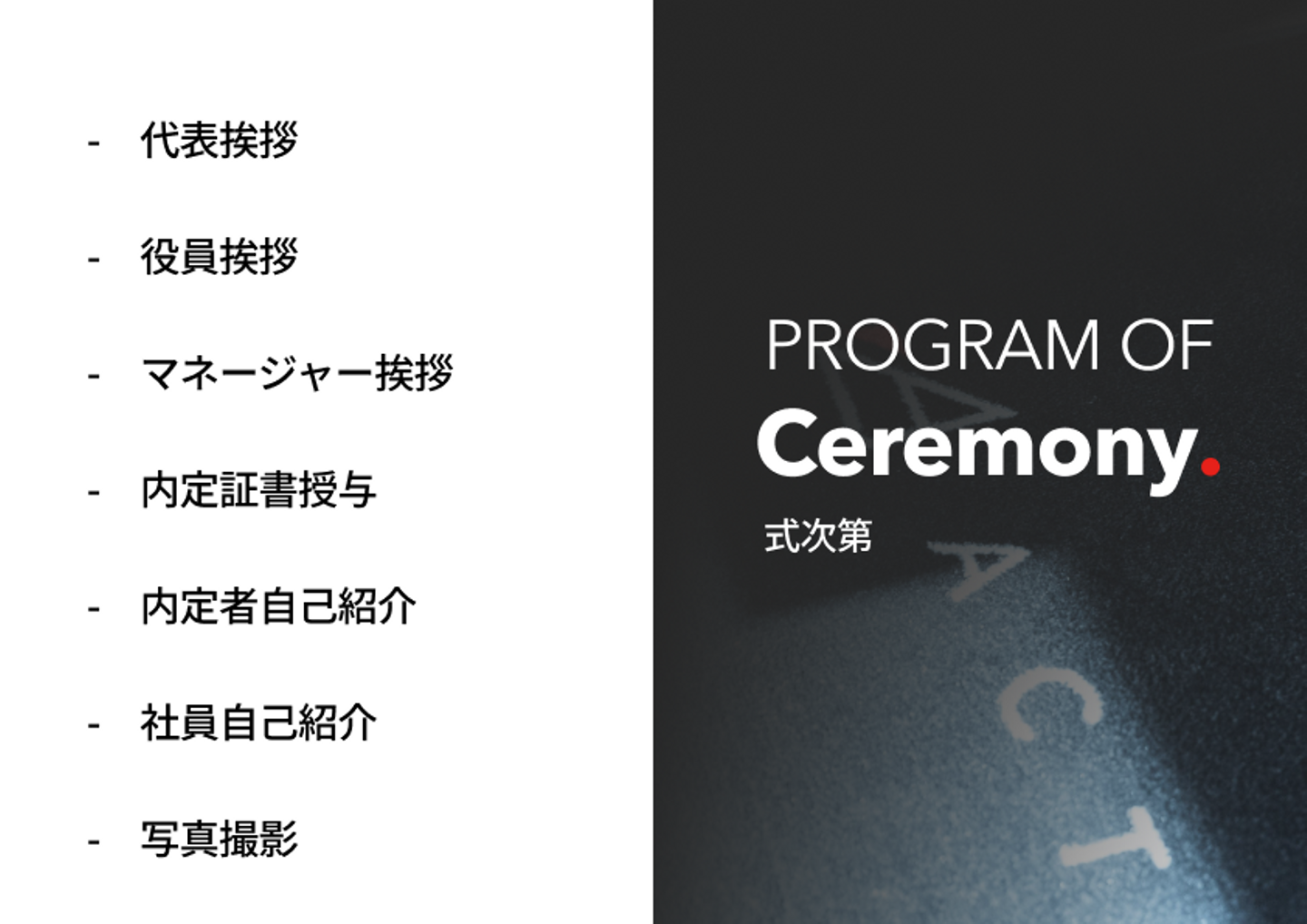 そこで、式への参加をCxOやマネージャー、配属先メンバーだけでなく、”全社員で“執り行うことにしました。