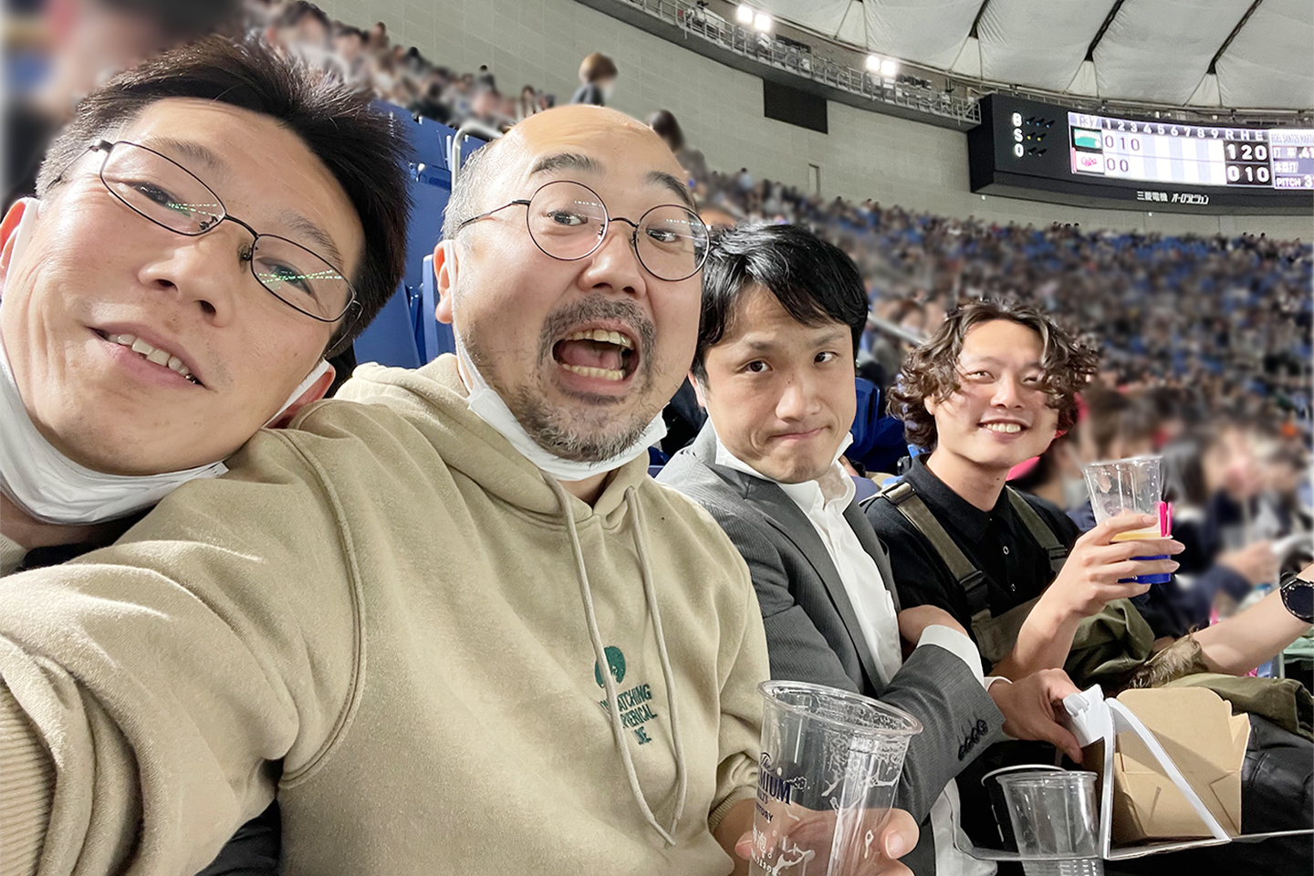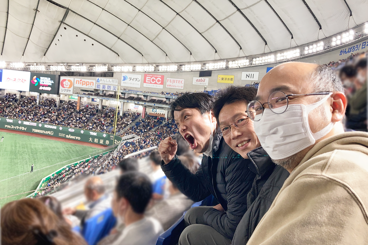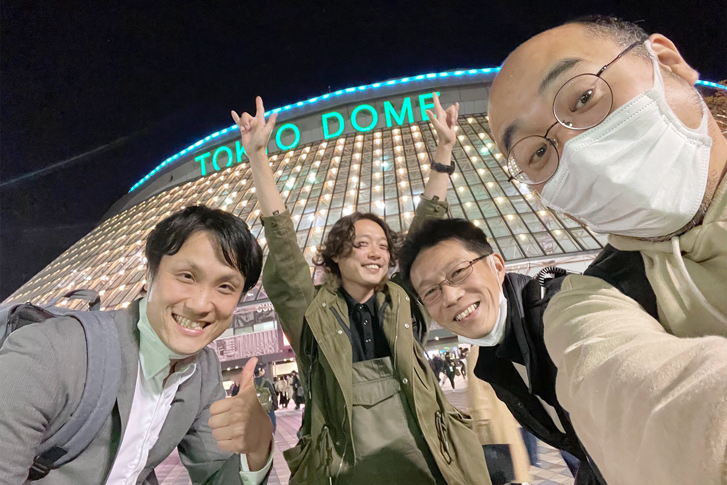 試合が行われる東京ドームでの観戦のため、仕事終わりに「出社組」はタクシーで現地に向かい「リモート組」と現地集合をしました。