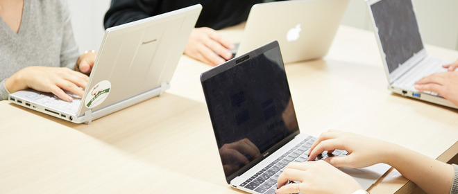 拠点が離れていたり、在宅ワークもOKなポジションもあるため、基本的なコミュニケーションツールは、Slack、Googlemeetなどオンライン中心。