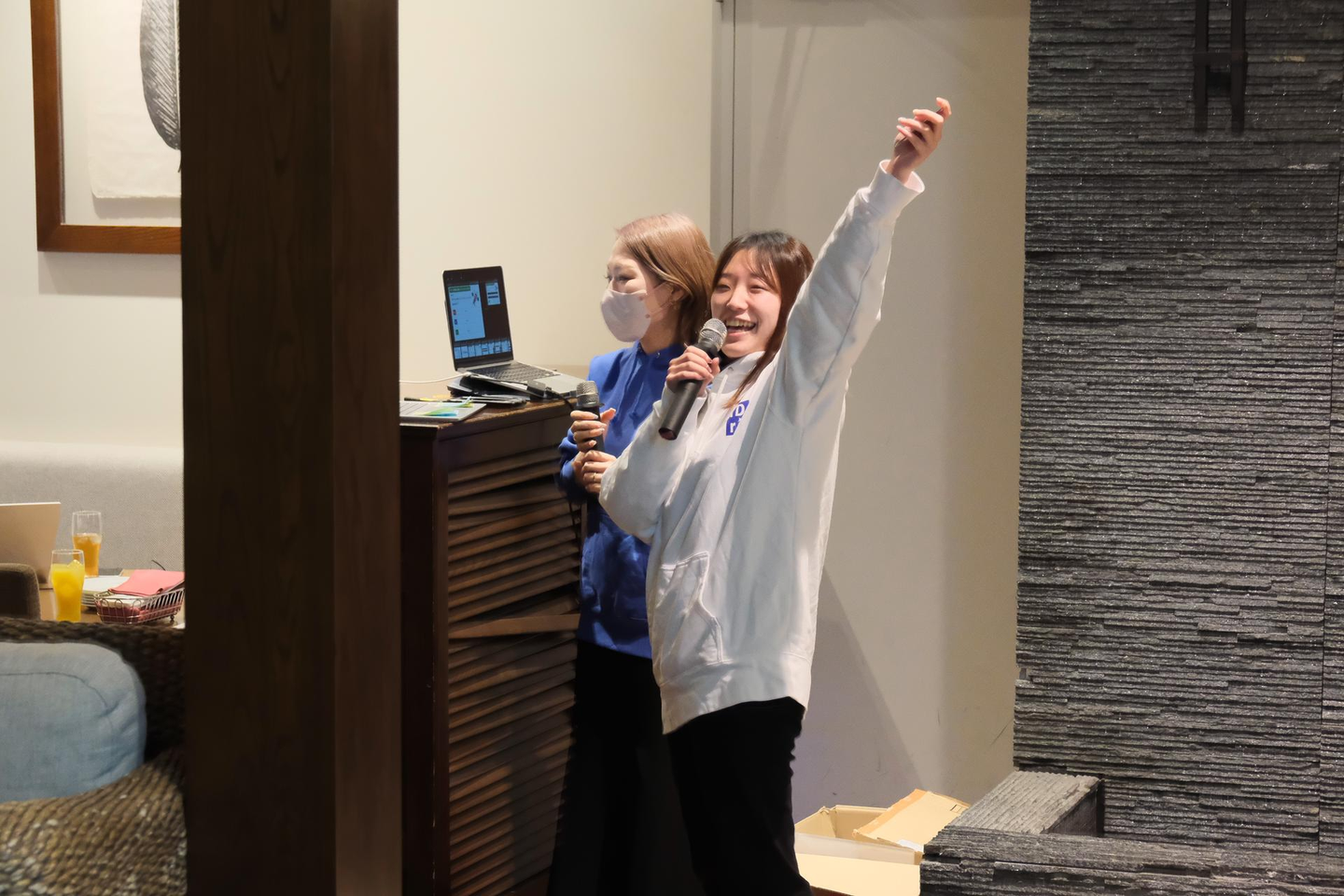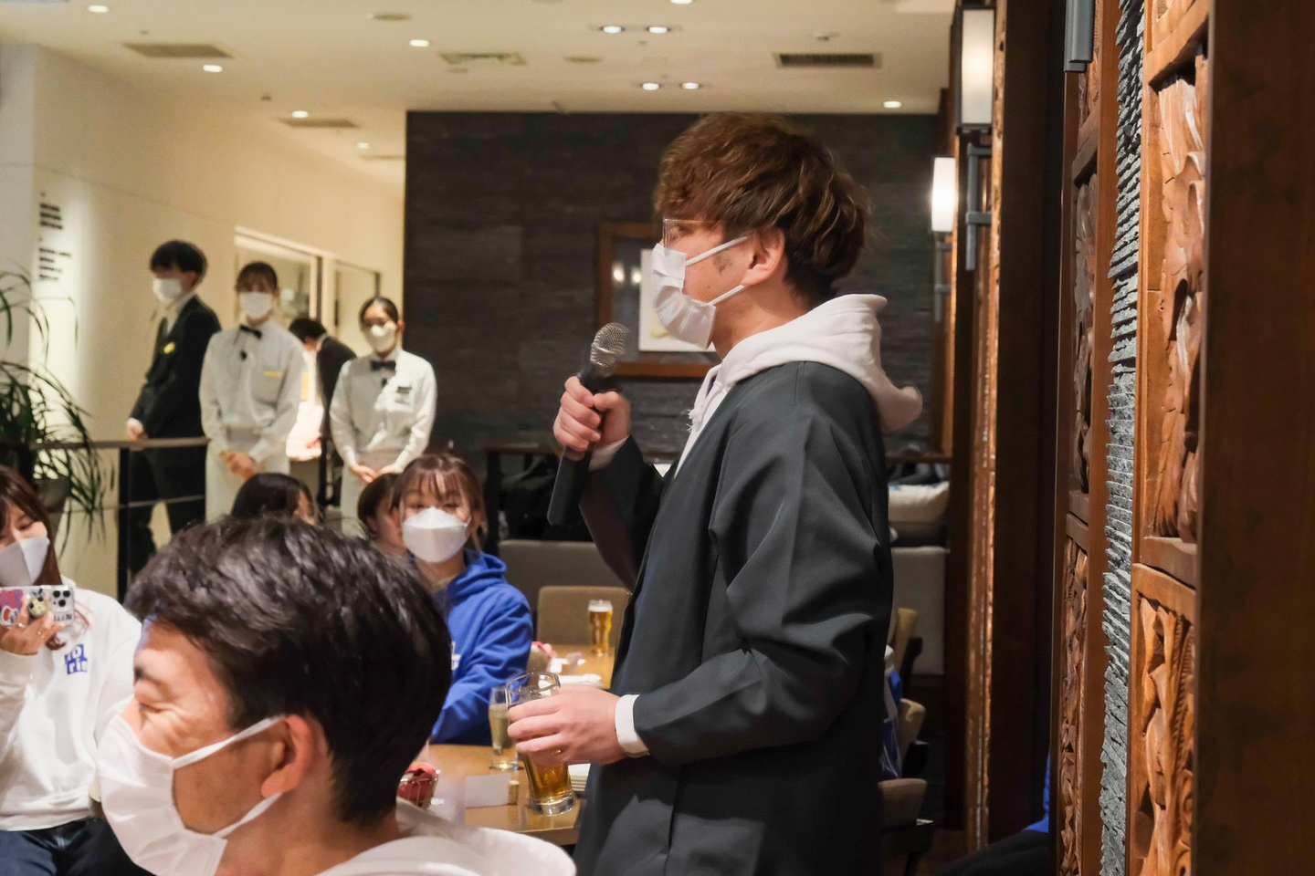 「2022年もあっという間に終わってしまいますけど、今年は色んなことがあって皆さんにとって成長の1年間になったんじゃないかなと思います。来年はもっと加速していく年になりますので、ここにいる人たちで新しく加わるメンバーをリードしていけるよう、さらに頑張っていきましょう!それでは、1年間お疲れ様でした!」
