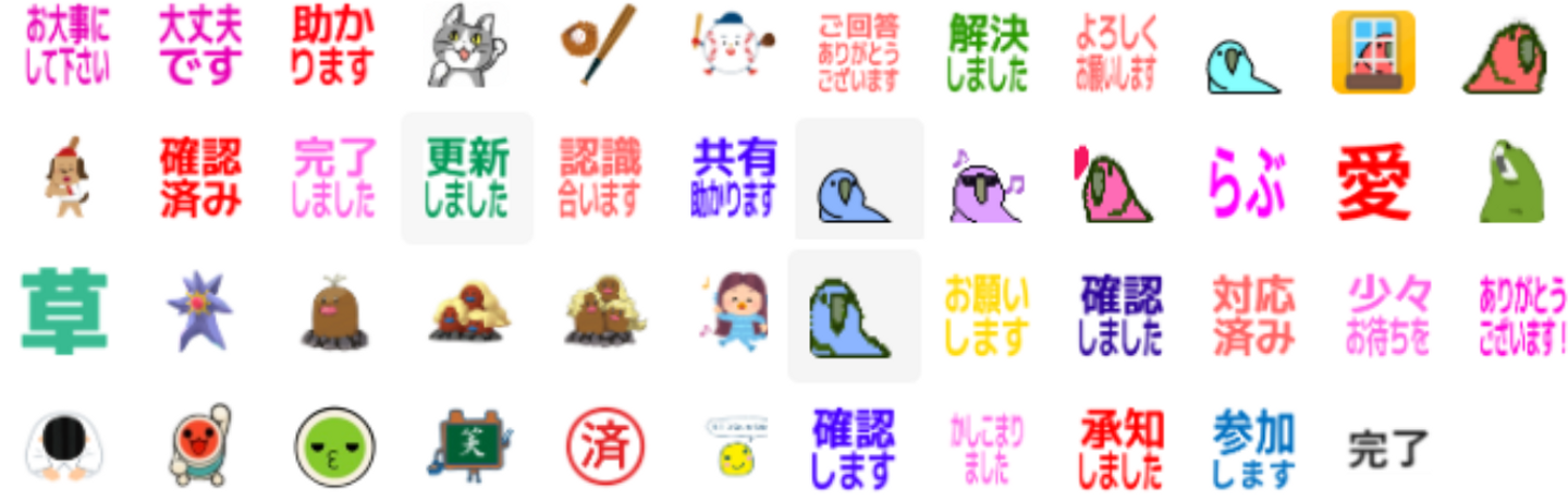 「👍」だけでなく、メンバーの個性が伝わるリアクションを使い回すことで、文字だけの会話でも温かさが伝わる工夫をしています。