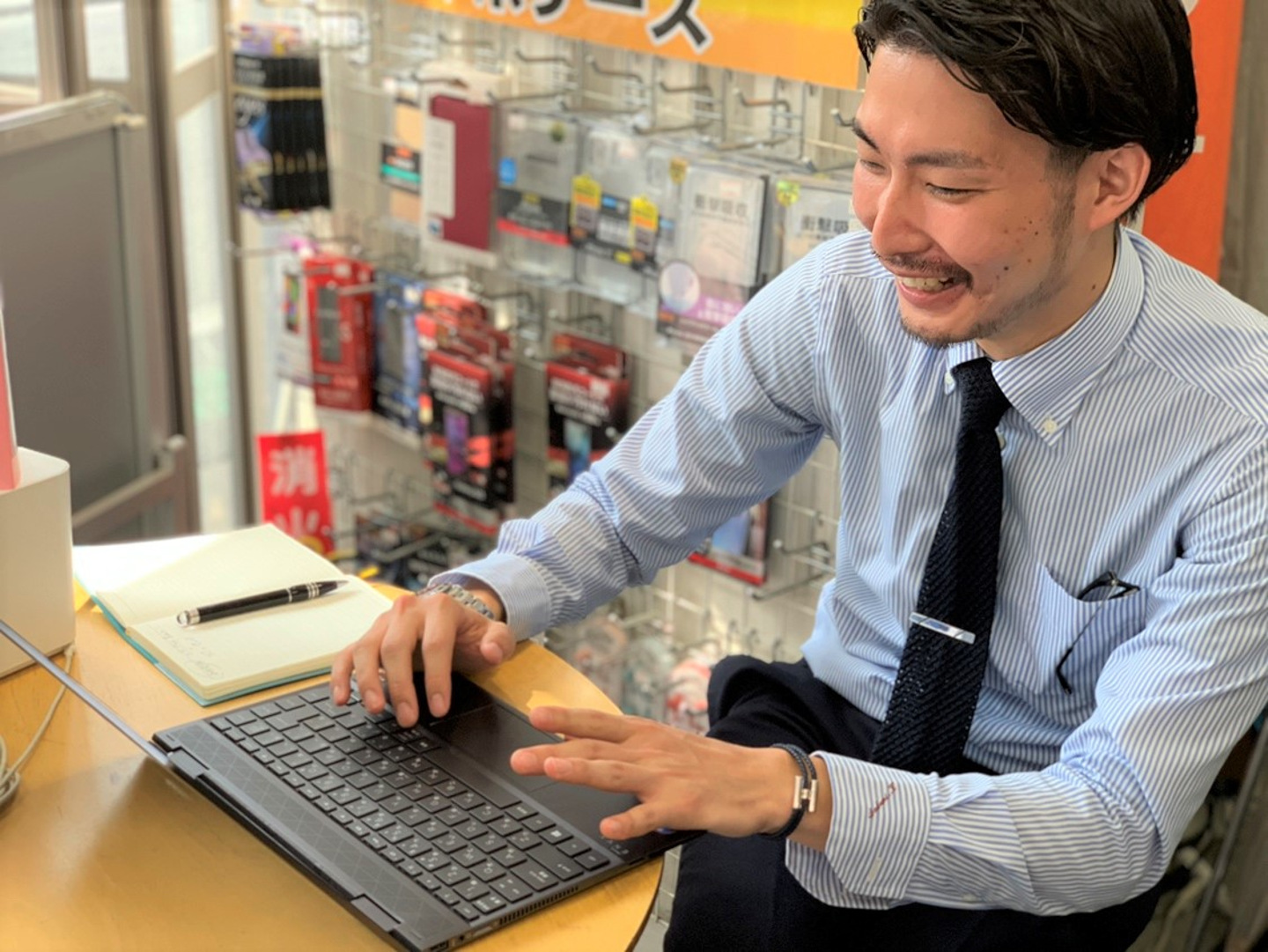 携帯電話ショップでの接客のよいところは、関われるお客様の母数が大きいこと。自動車やマンションのセールスに比べれば、より多くのお客様と出会えます。出会うお客様一人一人が望むことや価値観も異なります。そうした現場で働いていると自然とコミュニケーション力も向上していきます。