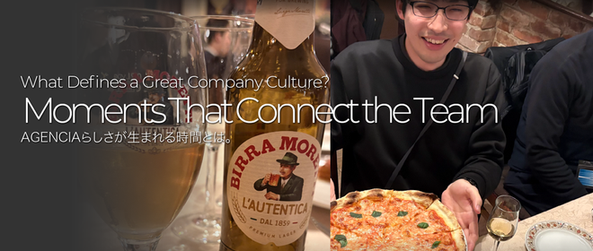 先日、AGENCIAでは年度末の締めくくりとして、メンバーで食事会を開催しました。場所は、落ち着いた雰囲気のイタリアンレストラン。普段はそれぞれのプロジェクトに向き合っているメンバーが、同じテーブルを囲んでゆっくり話す時間になりました。「仕事の延長」ではなく「人としての時間」AGENCIAの特徴のひとつは、いい意味で“フラット”な関係性です。この日も、役職やチームの垣根は関係なく、・最近の仕事の話・ちょっとした失敗談・プライベートの話など、自然体で会話が広がっていました。普段の業務では見えにくい一面が見えたり、「あ、この人こういう考え方するんだ」と新しい発見があったり。こうした時間が、日...