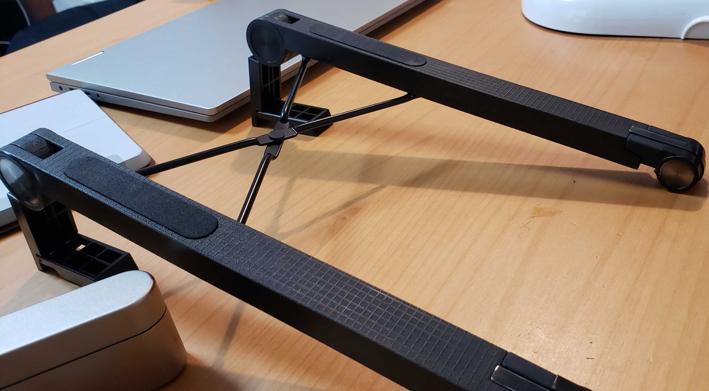 ▲PC台。少し角度がついて首が痛くなりにくいのでおすすめとのこと。