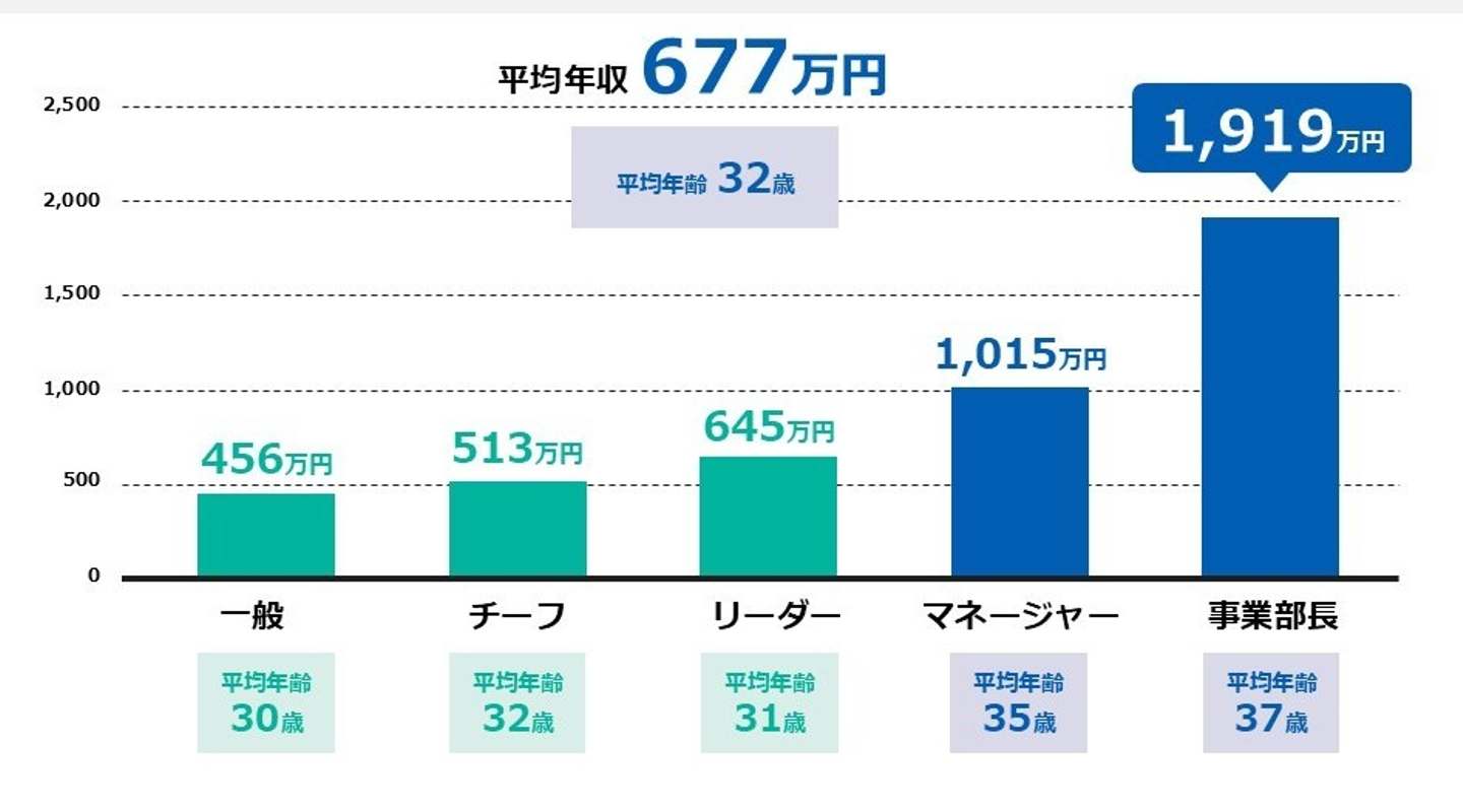 ・チーフメンバーの平均年収【513万円】(平均年齢32歳)