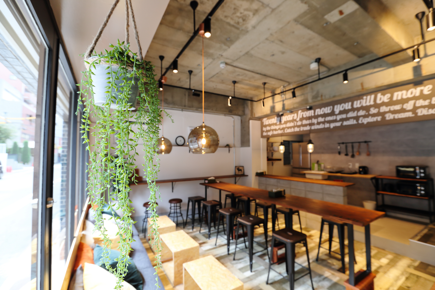内装はとてもおしゃれで、見た目もカフェっぽいので、よくゲストハウスの前を通る人が立ち止まって見ています。