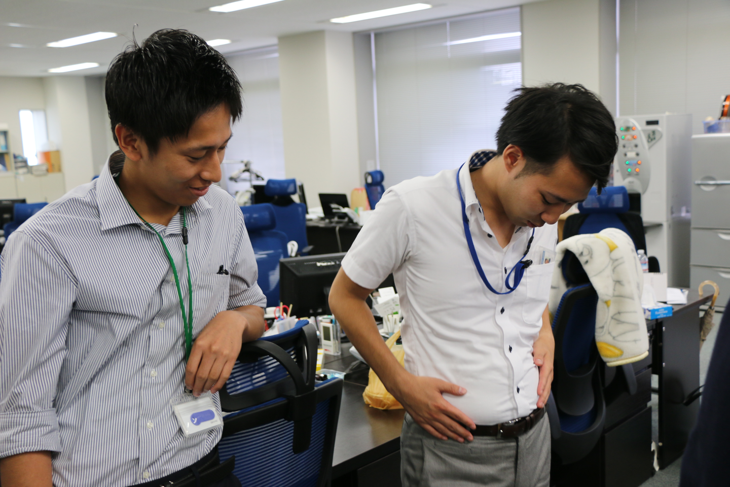 16新卒のHIDETOSHIちゃんもSAYUMIさんに負けない立派なお腹だったので撮影してもらいました。こっちのお腹もナデナデしてやってください。まんざらでもない反応があるはずです。