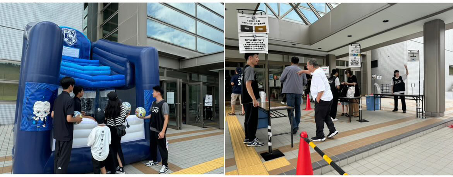 試合開催日の2日間では私たちが入場口やグッズブースにて笑顔でお客様を迎え入れることや声出しをして会場の雰囲気づくり、試合終了後の来場されたファンの方のお見送りをさせていただきました。そこで笑顔で来場し帰宅されるファンの方の姿を見て、選手だけでなく、チームスタッフやアルバイトの方、また来場されるファンの方、初めて会場に訪れる地域の方を含めて福井ブローウィンズというチームが構成されていることを感じました。