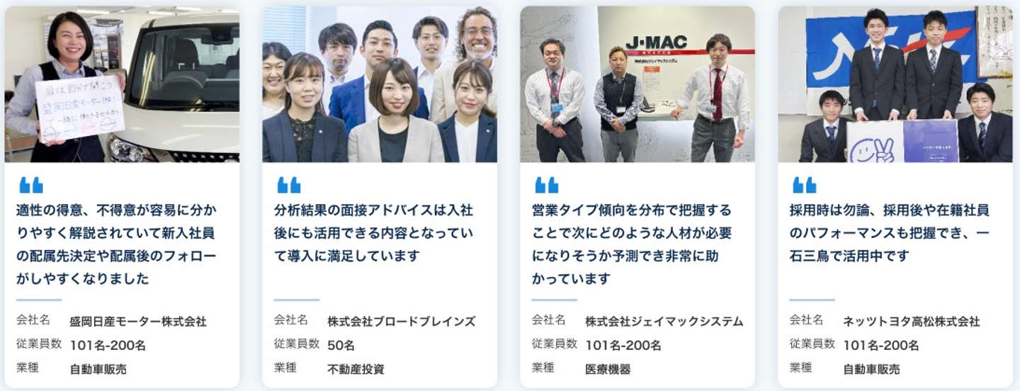 インタビューのお時間をいただき皆さんが営業採用の現場で何を見たいと思っているのか、適性検査に求めるものは何なのかご意見をいただき現在の製品があります。