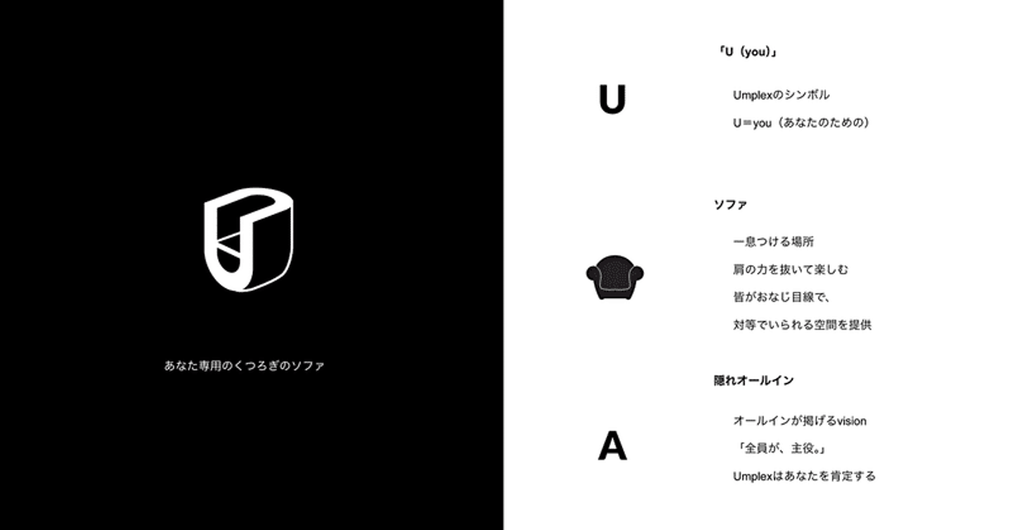 前田:ロゴの決め手はモチーフですね。採用したロゴは「ソファ」をモチーフにしています。肩の力を抜いて、映画や漫画のように求人のコンテンツを楽しめるメディアとしたかったのでピッタリだなと。実際にUmplexには、ALL-INが制作したエンタメ性の高いコンテンツが豊富にあるので、ぜひ見ていただきたいです。