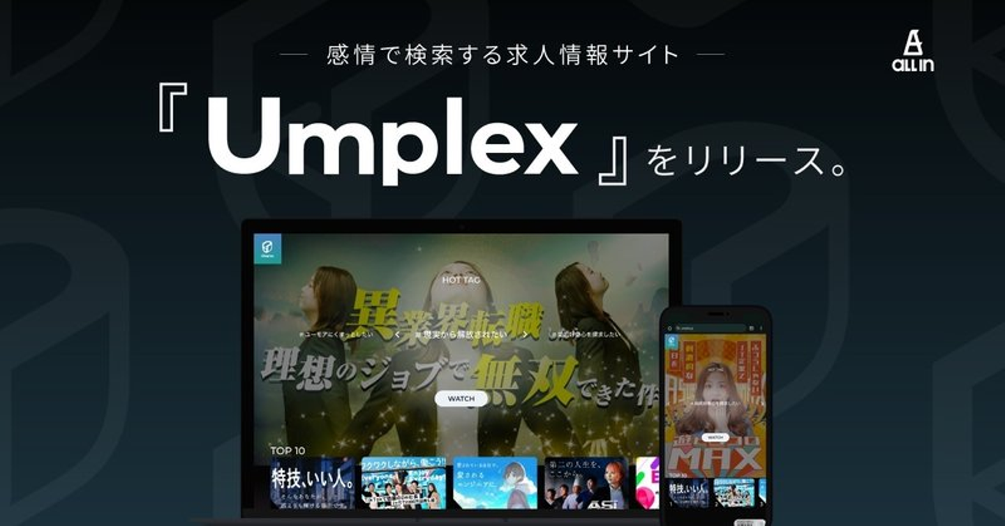 ALL-INでは、2023年12月に感情で検索する求人情報サイト『Umplex』をリリース!このたび100記事投稿の突破を記念して、代表前田からUmplexの立ち上げ秘話を聞いてきました。