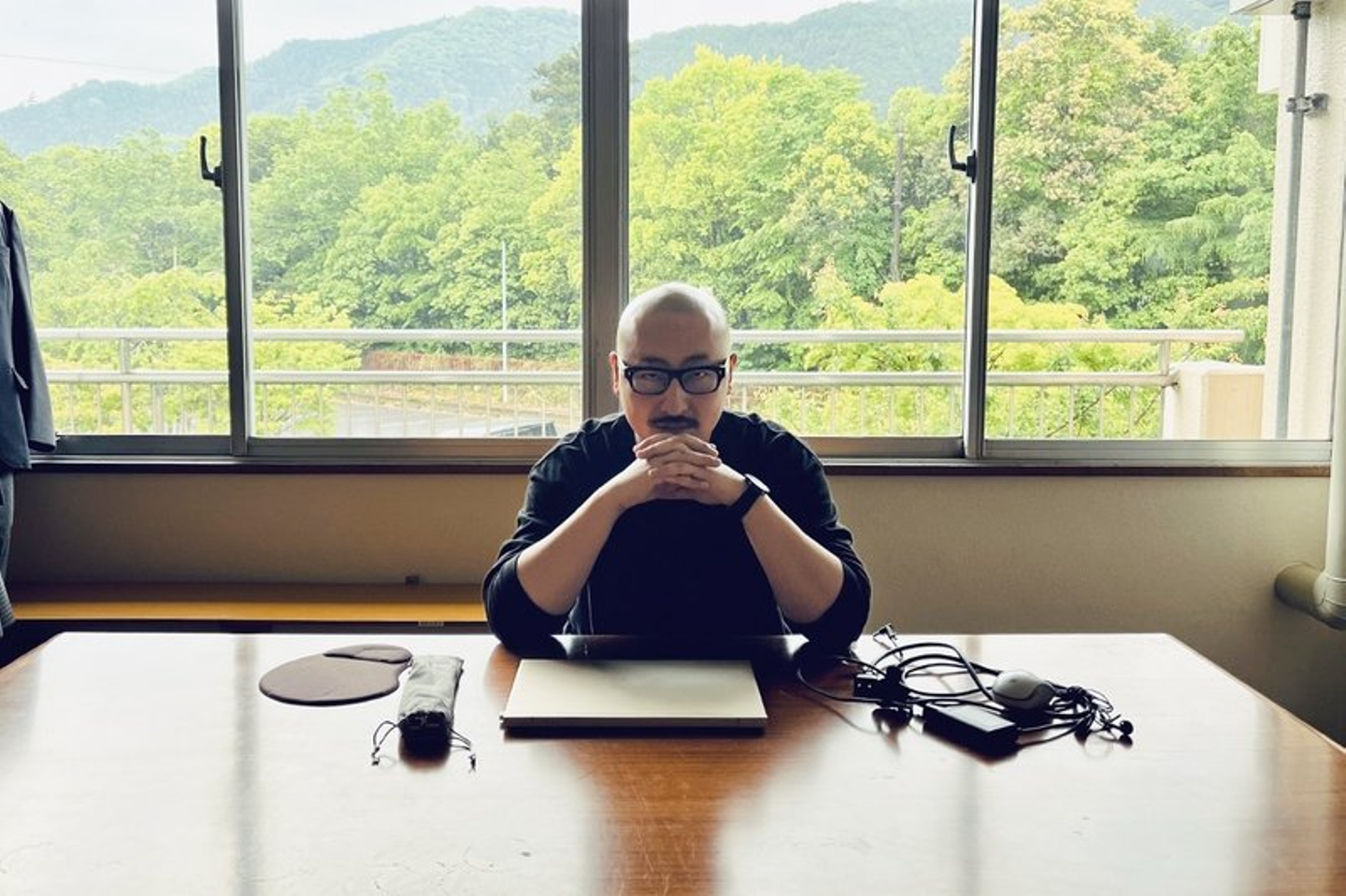 <奥多摩の校長室に座るわたくし>