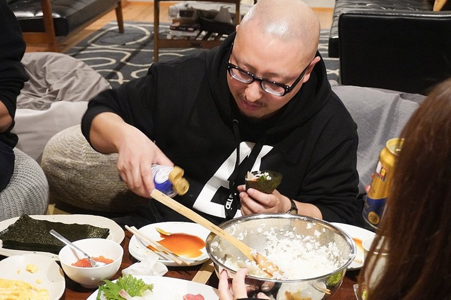 ・みんなでわいわい手巻き寿司。楽しい晩ご飯タイム