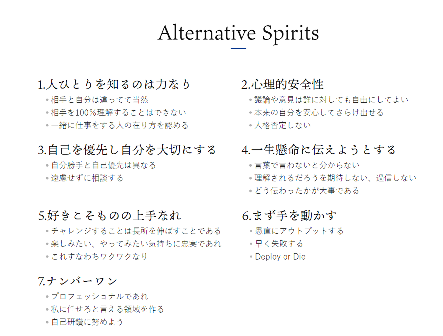 なのでこの行動規範は、会社とか関係なく共感する部分は皆さんでどんどん使って構わない。