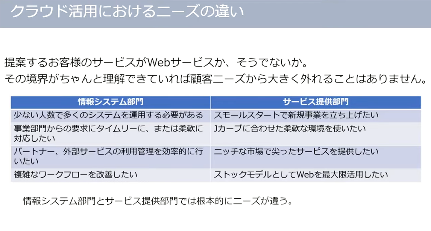 あとはJカーブに合わせた柔軟な環境を使いたいというニーズにですが、これはスタートアップに限る話じゃないです。はっきり言って。