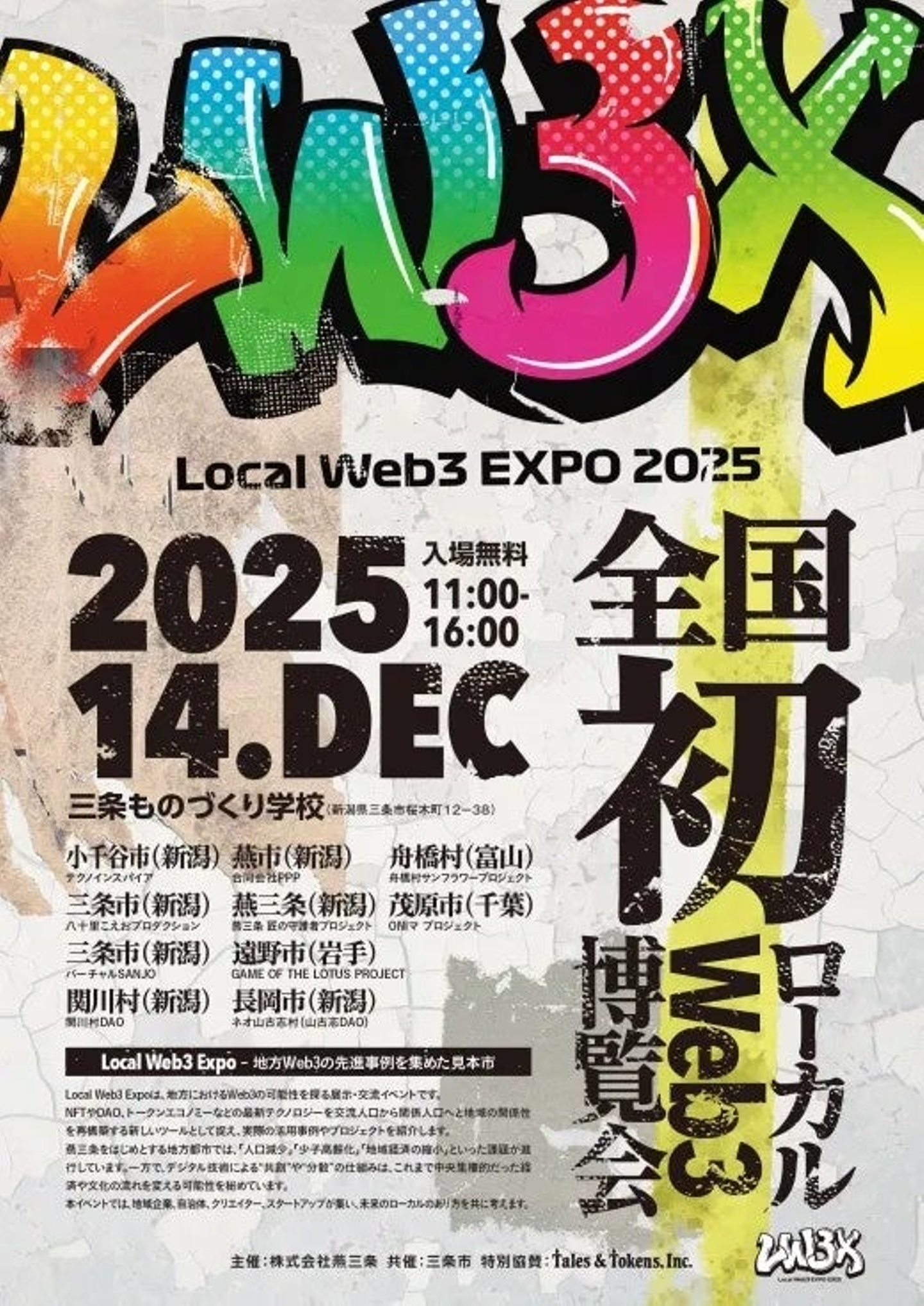 2025年12月14日(日)、新潟県三条市の「三条ものづくり学校」で開催される「Local Web3 Expo 2025」に、あるやうむが手がける地域おこし協力隊DAOから新潟県・関川村DAOと富山県・舟橋村DAOが出展しました。