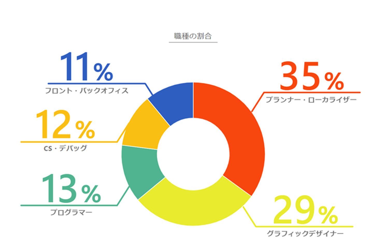 フルスタックでやっていることもありプランナー・グラフィックデザイナー職の方が半数以上を占めいています。だからと言って部署に垣根もなく、企業説明会などのイベントで各職種の方にご協力いただいた際にも和気あいあいとした雰囲気で雑談をしたりしています!