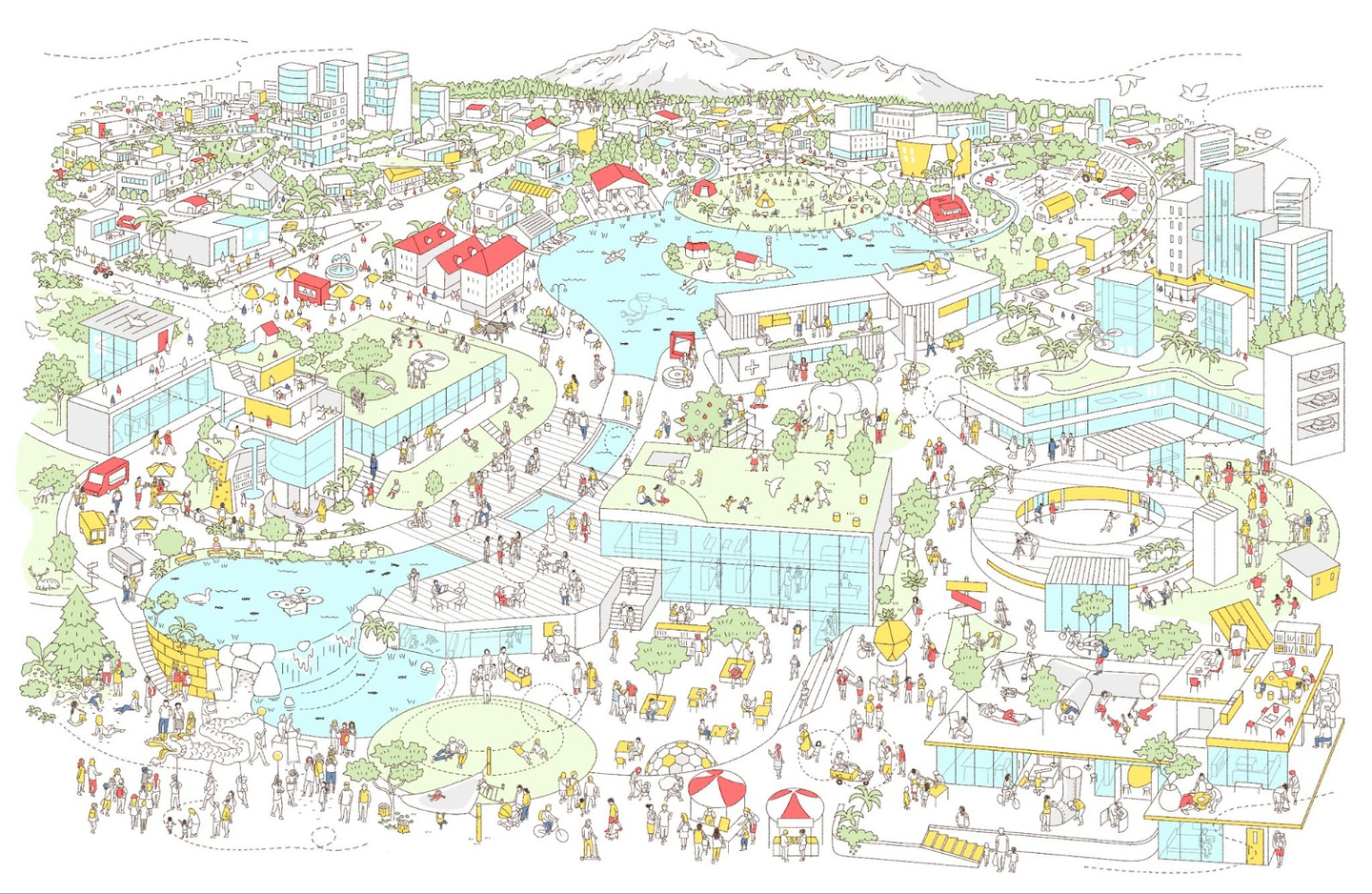 「グラングリーン大阪」はこれまでの都市づくりのパラダイムを超えて、国籍や年齢、性別、障がいの有無など、多様性を受け入れて知恵を分かち合い、それぞれのQuality of Life(QOL)の向上を感じられる社会の構築に貢献することを念頭に、「みどり」と融合した生命力あふれる都市空間や、イノベーション活動の起点となる施設、市⺠や企業など、さまざまな人々が新しい活動にチャレンジできる場や仕組みをつくり、活力に満ちた創造的なライフモデル“Osaka MIDORI LIFE”をうめきたから関⻄、そして国内外へと発信していくことを目指しています。
