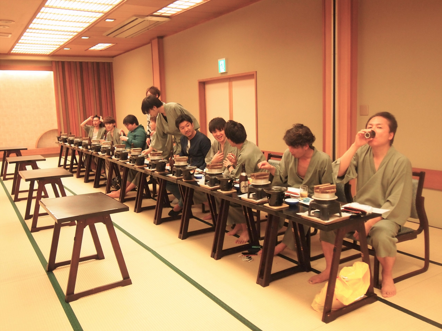宝探しを終え、クタクタになりながらバスに乗り込んで宿へ出発。宿泊したのはホテル鐘山苑です。大きな富士山が目の前に見える露天風呂が2か所あり、子持ちの主婦(2名)から「子なしで温泉に入れるなんて、幸せ~」と喜びの声。他のメンバーも富士山を見ながらゆっくりとお風呂につかり、疲れを癒しました。