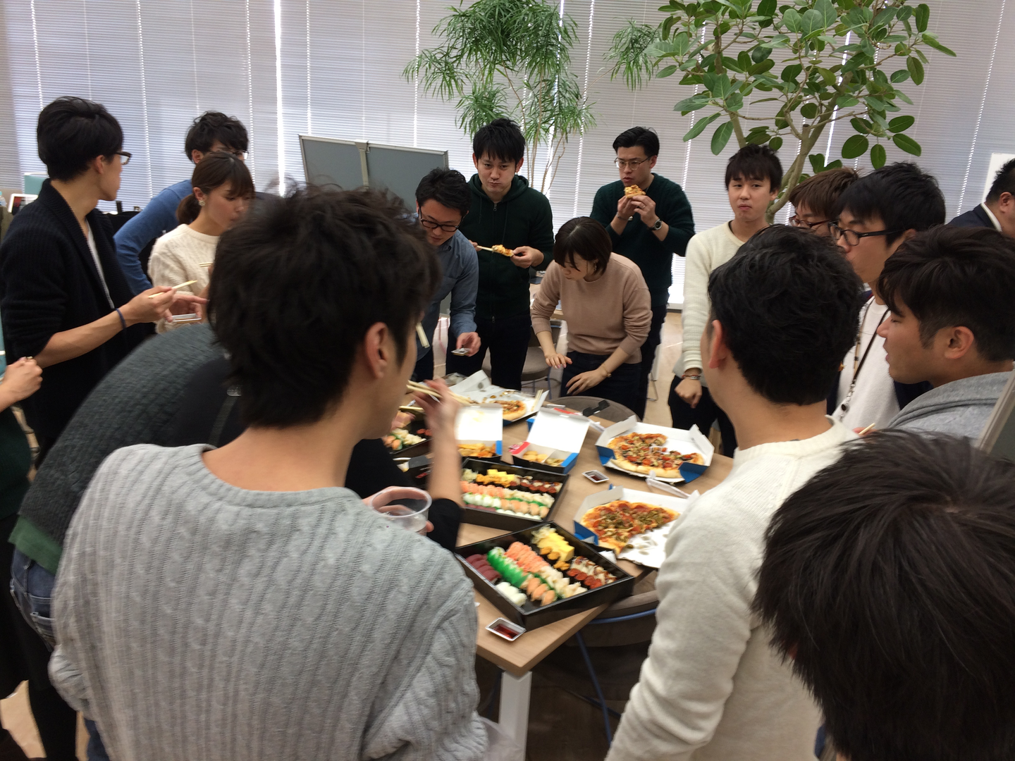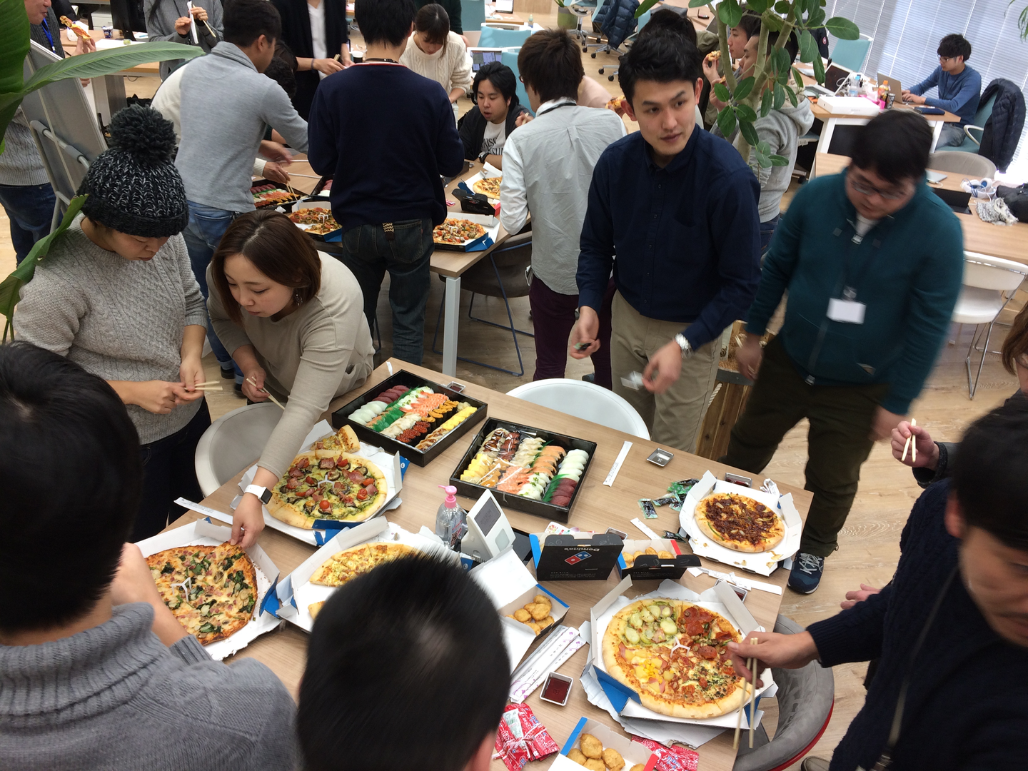そして、オフィスに戻るとお寿司とピザが!!