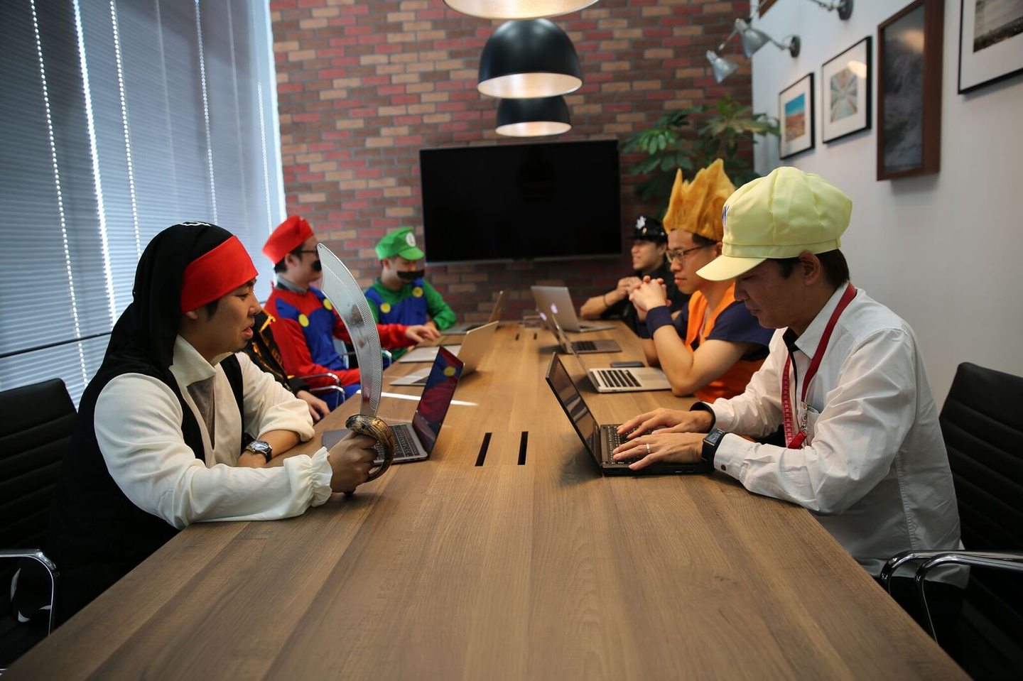 ボードメンバーミーティングに潜入してみると、思い思いの衣装を身にまとった役員たちが。